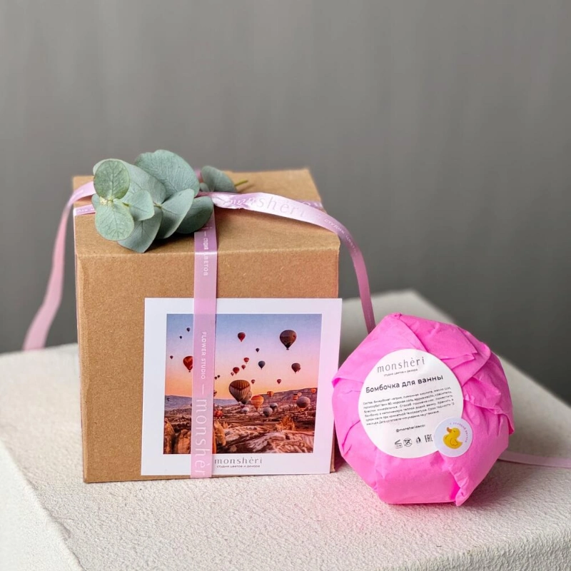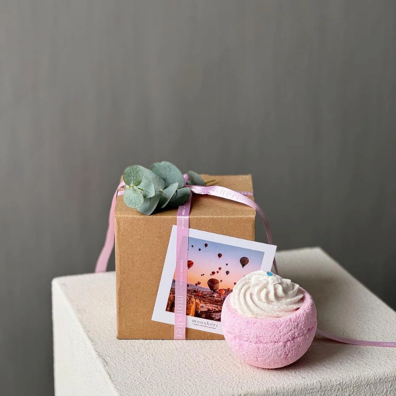 Подарочный набор с бомбочками для ванн ручной работы и цветочной композицией