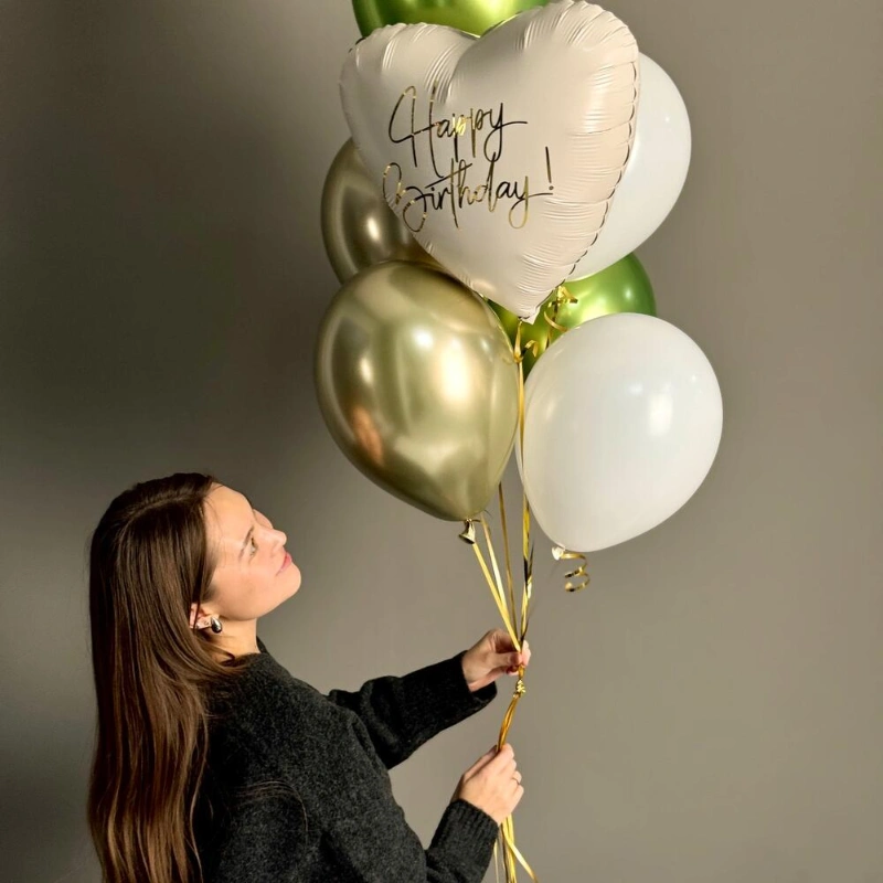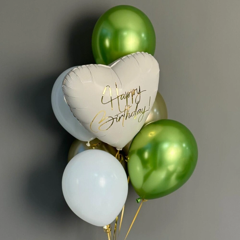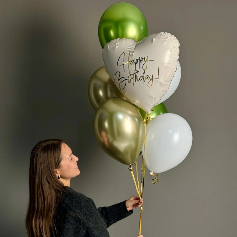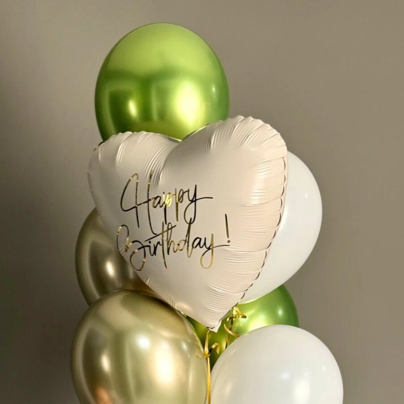 В фонтане: 4 хромированных шарика, 2 матовых, 1 фольгированный с надписью ✨