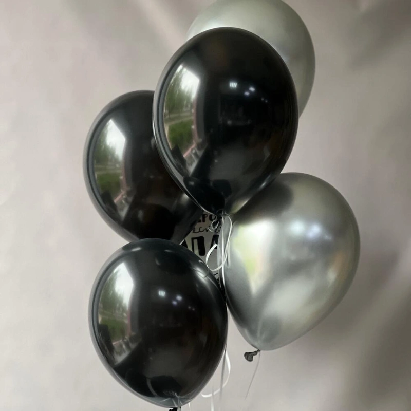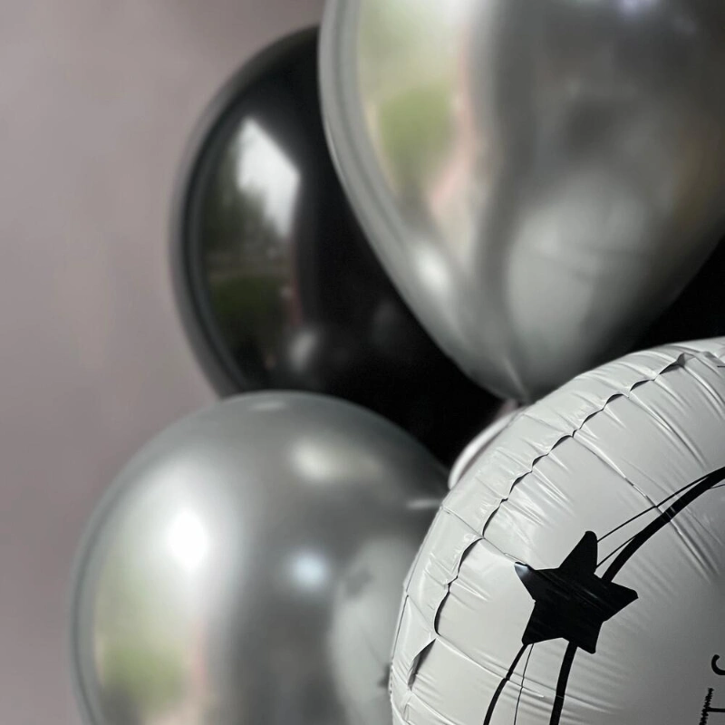 В составе фольгированный шар, 3 латексных шара и 2 хромированных.