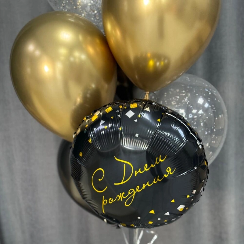 Сет шариков «С Днем рождения»🖤💛 7 шт