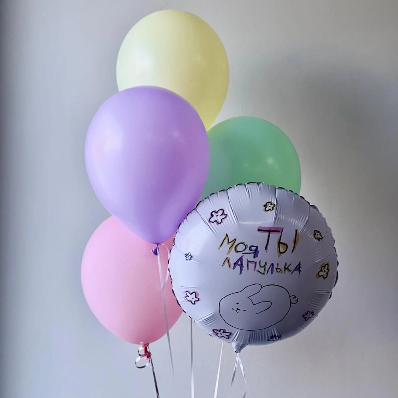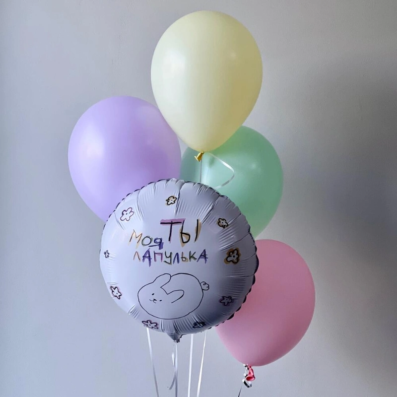 Нежный сет из Шаров «Ты моя лапулька» Фольгированный шар и 4 латексных разноцветных шарика, нежные оттенки и долгий полет!