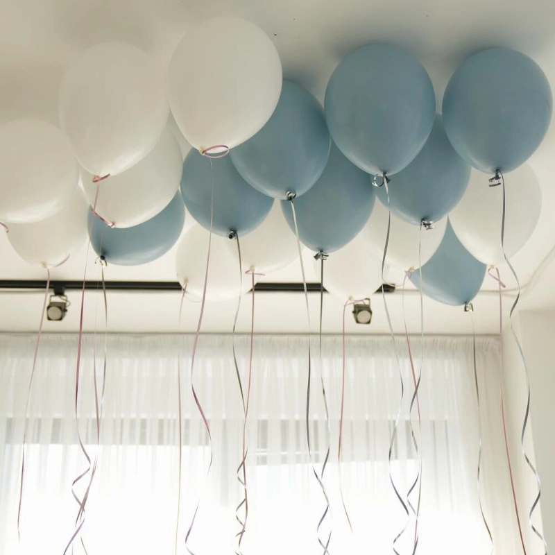 Шарики в потолок: белые и небесно-голубые, — идеальное украшение для вашего праздника! Эти 20 нежных шаров создадут атмосферу радости и веселья. Они поднимут настроение гостям и украсят любое помещение.