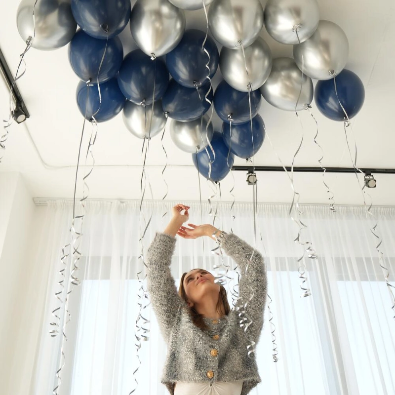 ГлавнаяКаталогПодаркиШарыШары под потолок ( хром серебро и матовые темно-синие )