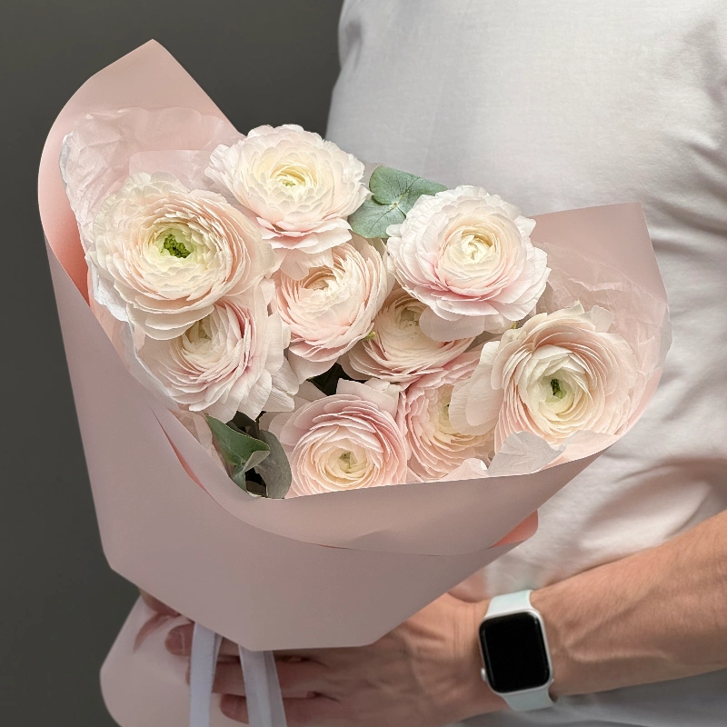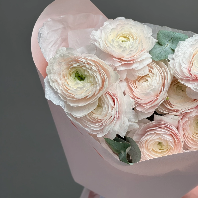Ранункулюсы и эустома в нежной упаковке 🤍
