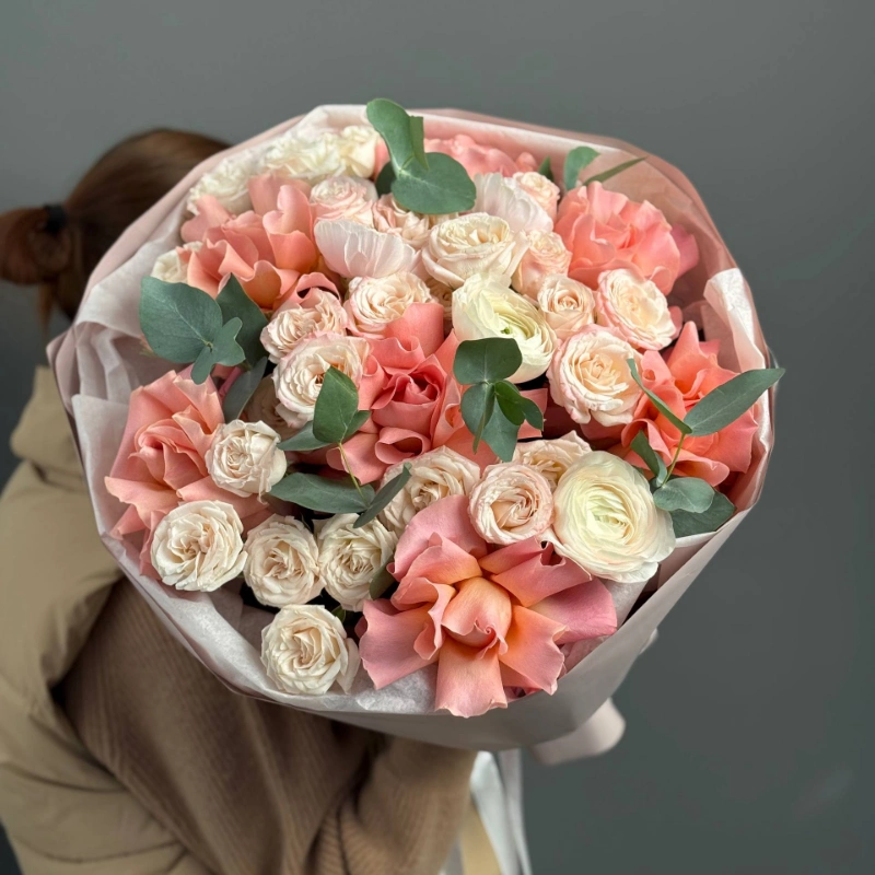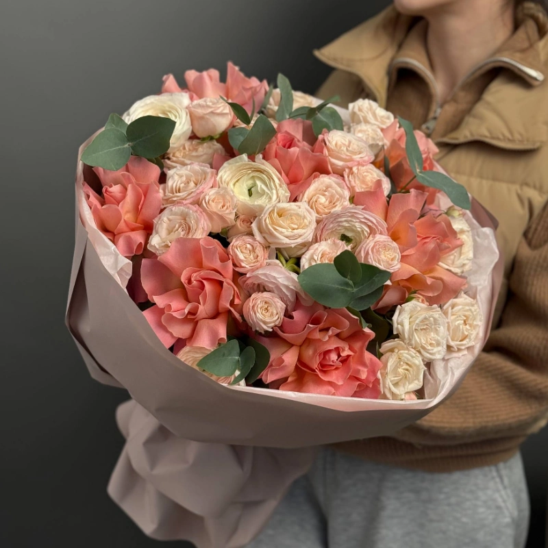 Букет с ранункулюсами и французскими розами