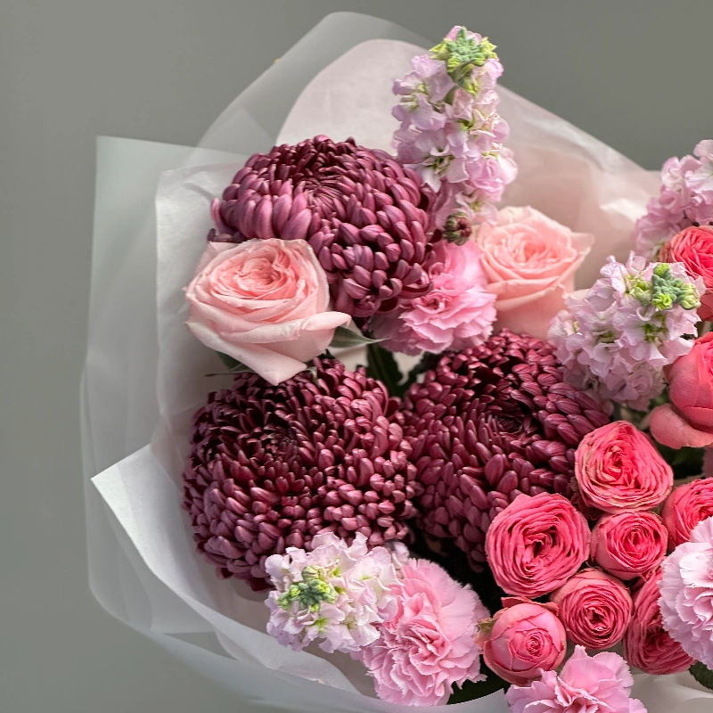 Хризантемы и кустовые пионовидные розы