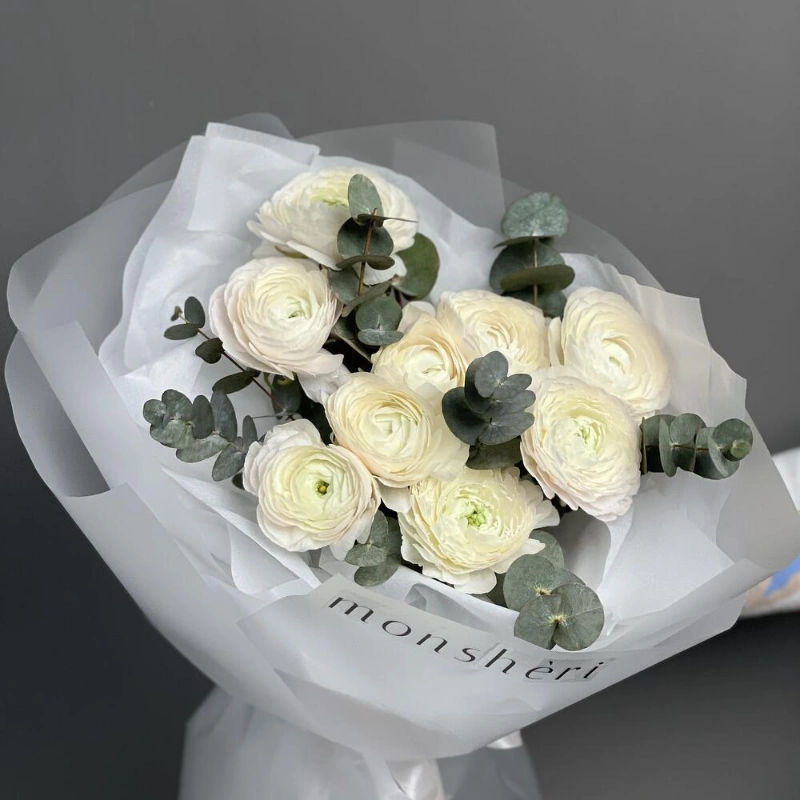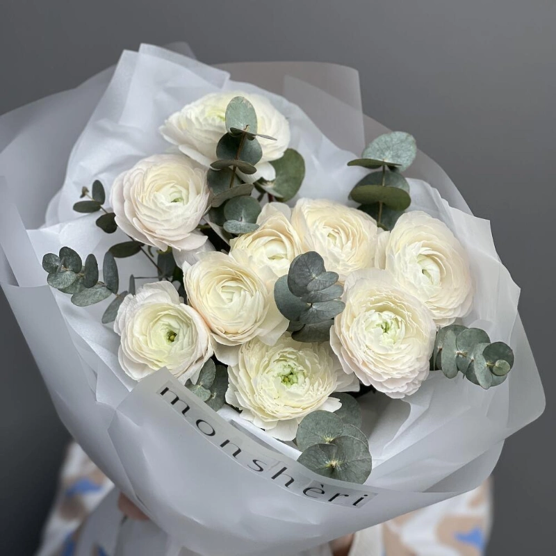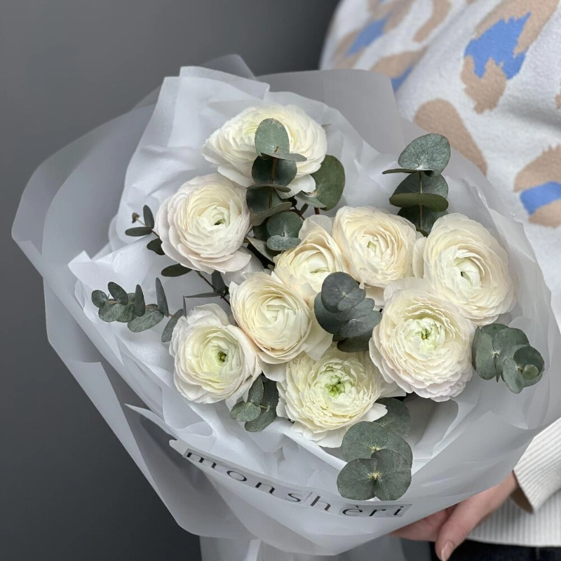 Изысканный эксклюзивный букет из волшебных ранункулюсов с эвкалиптом! Ранункулюсы - это цветы похожие на лютики, дорогие и желанные, для истинных ценителей цветочного вдохновения!