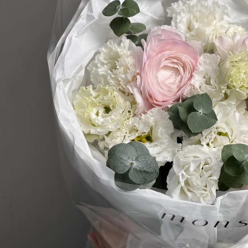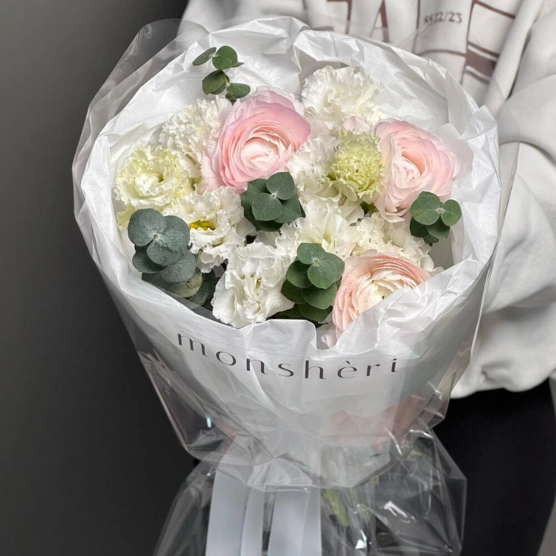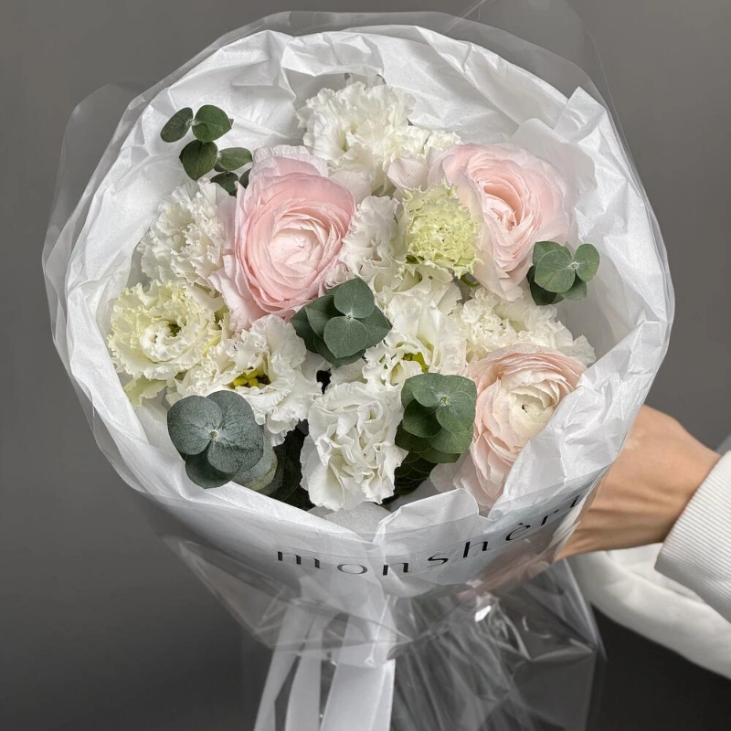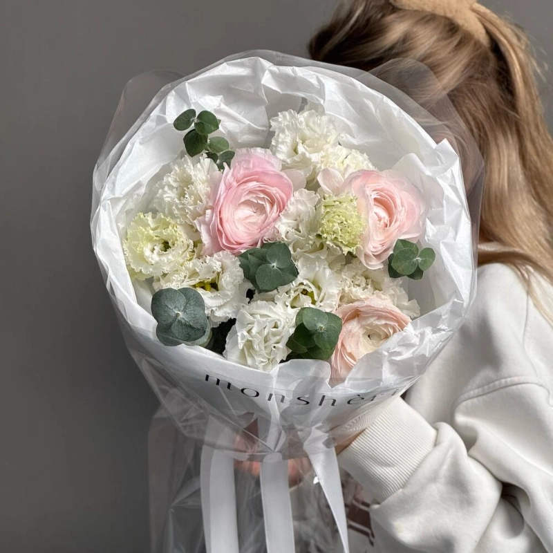Ранункулюсы и эустома в нежной упаковке 🤍