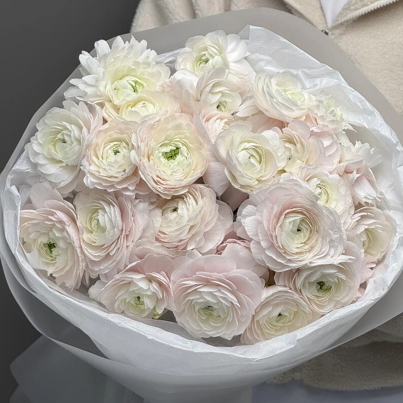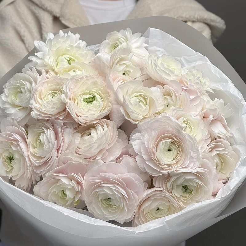 Ранункулюсы символизируют очарование и привлекательность, нежность, любовь и романтику. Порадуйте своего любимого человека, подарив ему композицию с белыми ранункулюсами🤍