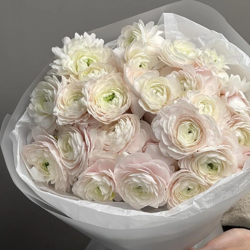 Ранункулюсы и эустома в нежной упаковке 🤍