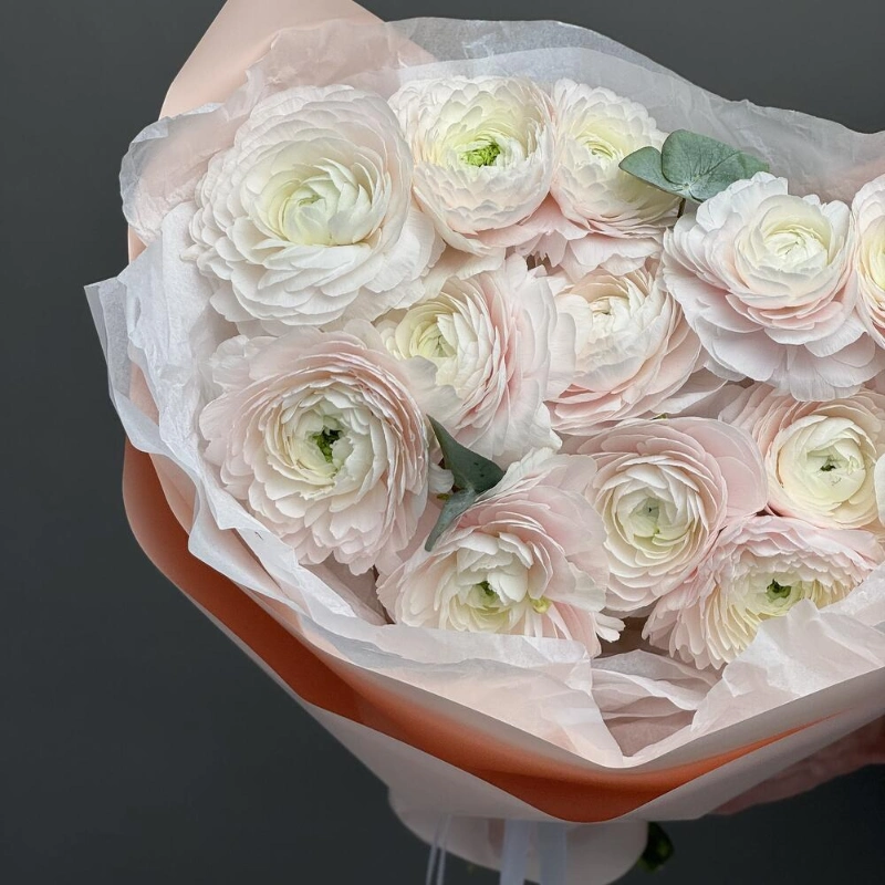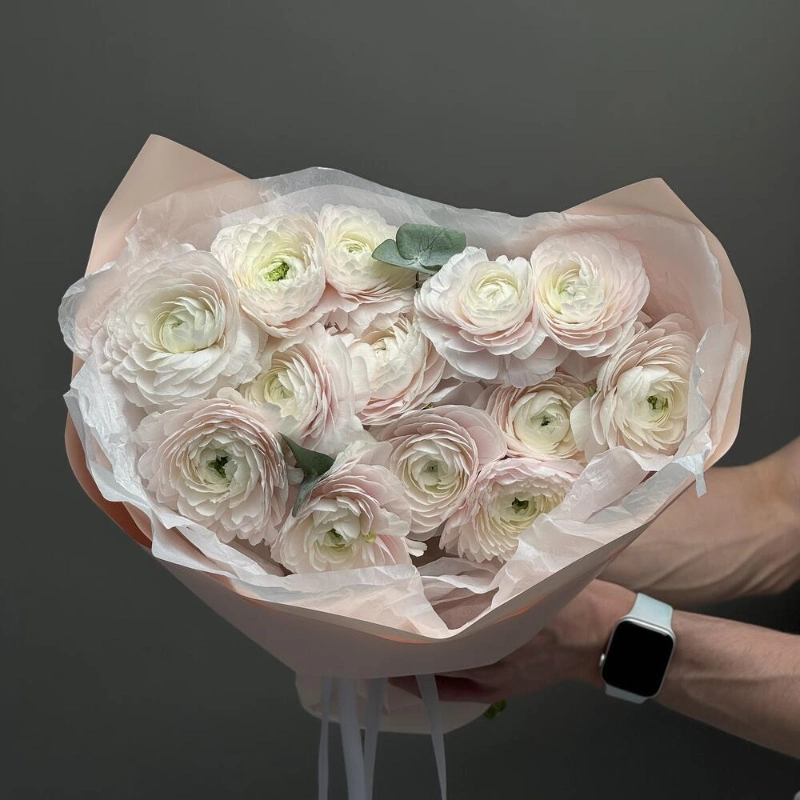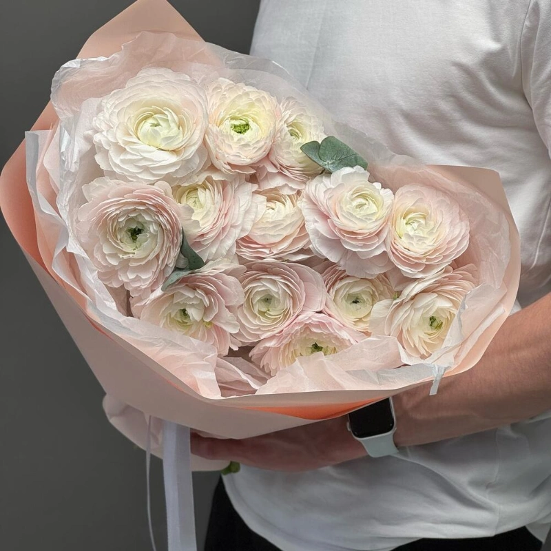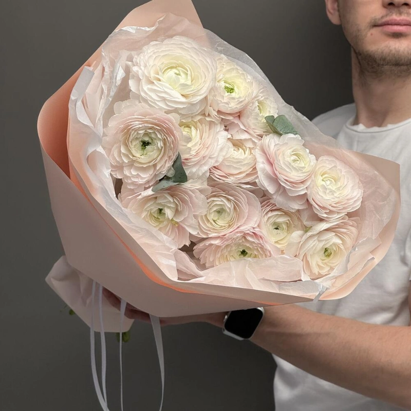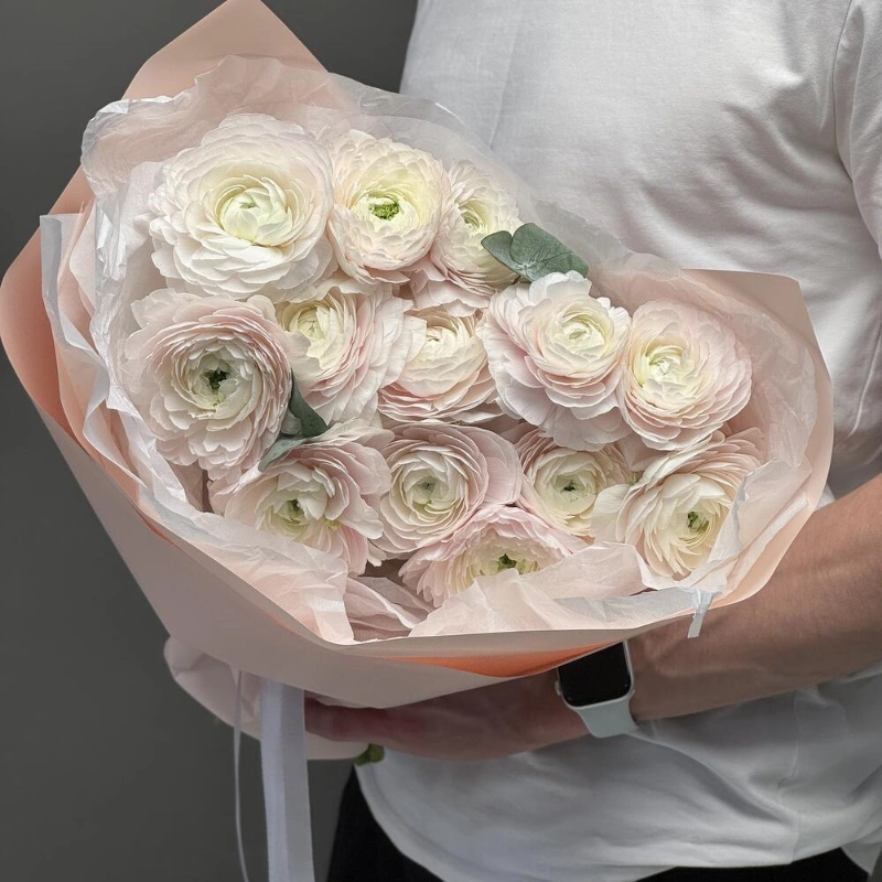 Ранункулюсы и эустома в нежной упаковке 🤍