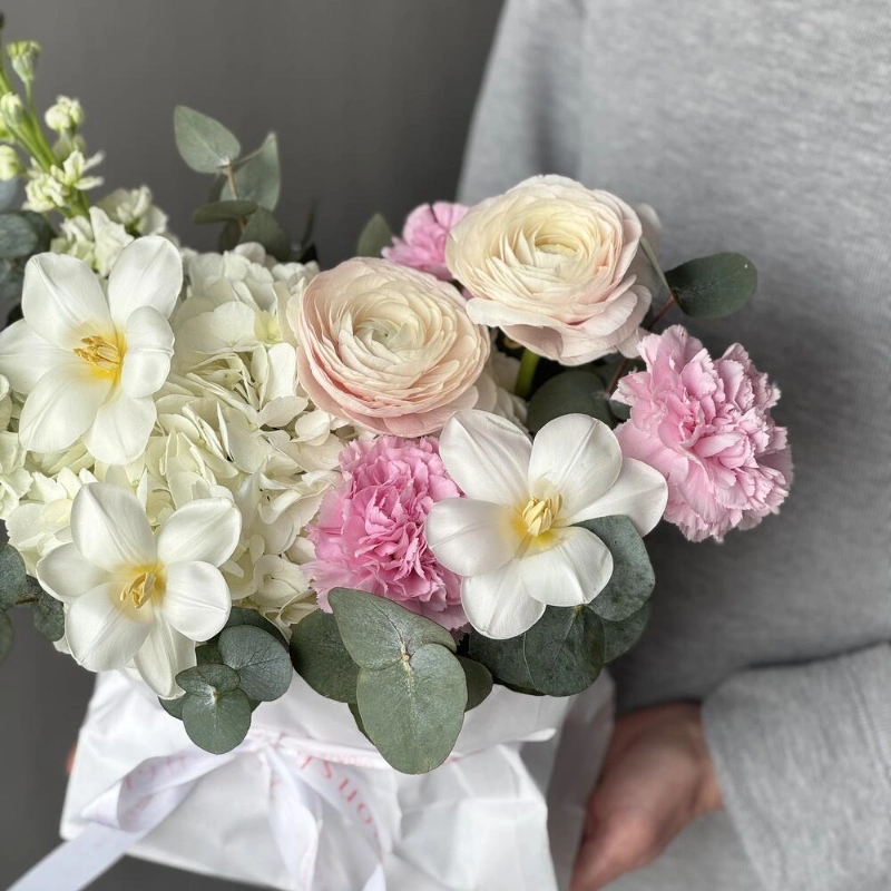 Ранункулюсы и эустома в нежной упаковке 🤍