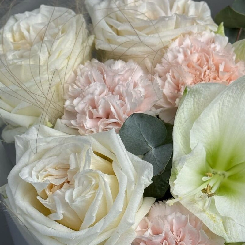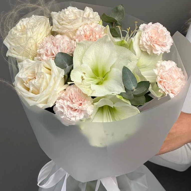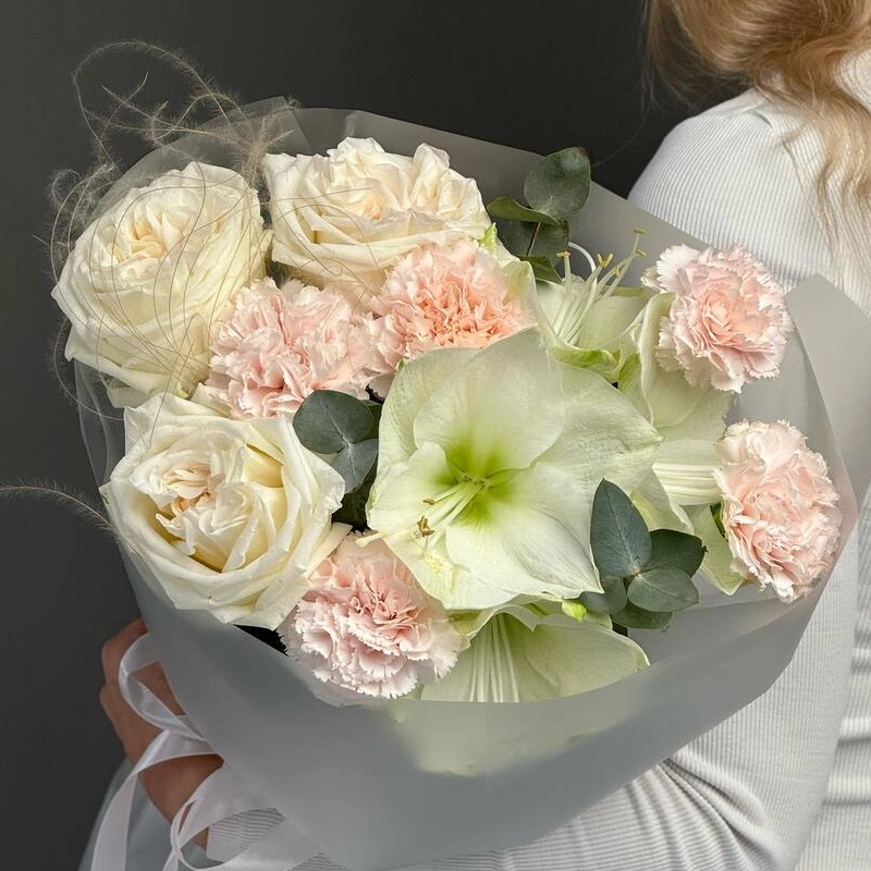 Состав из пионовидных роз White O’Hara и амариллисы не оставит равнодушной никого✨