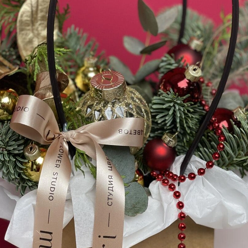 ГлавнаяКаталогНовый годНовогодняя композиция из веток нобилиса с елочными игрушками