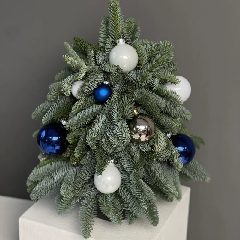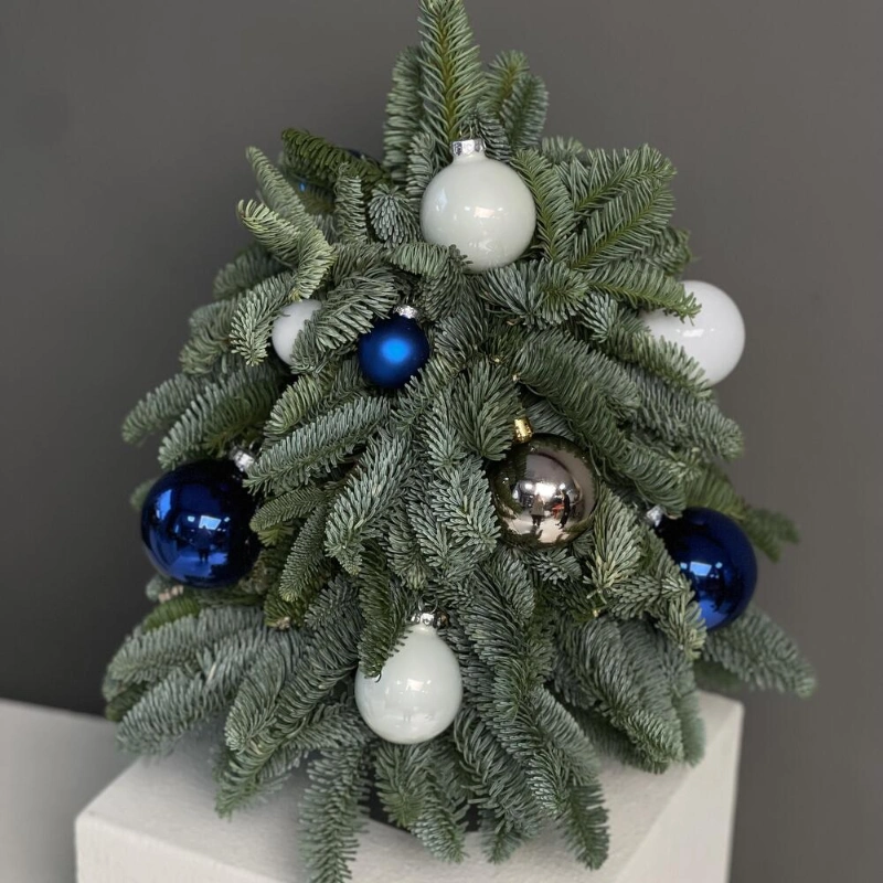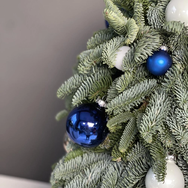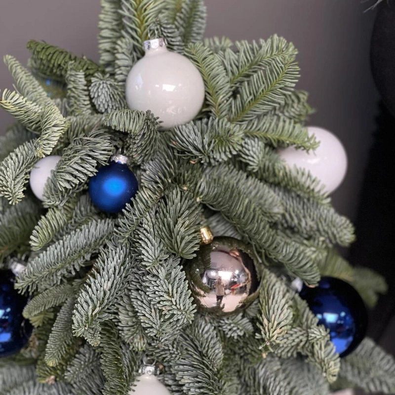 Новогодняя композиция из веток нобилиса с елочными игрушками