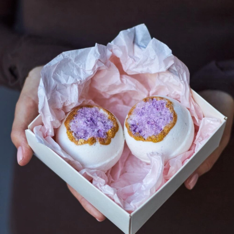 2 бомбочки в подарочном боксе подарят вам незабываемые ощущения: они шипят, создавая вау-эффект, и обладают полезными свойствами для вашей кожи и релаксации🩷
