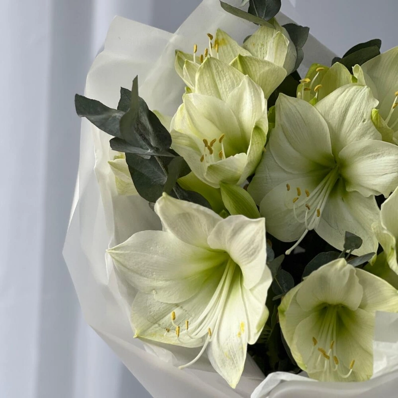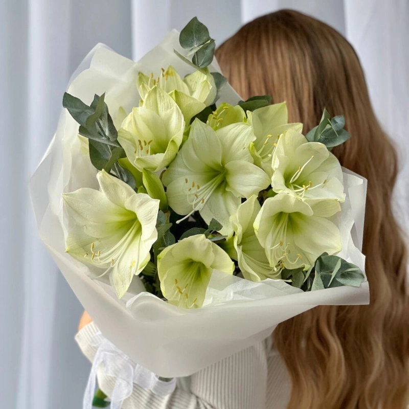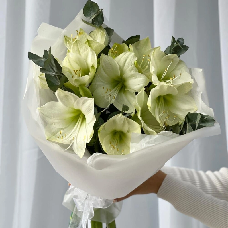 Этот изысканный букет Моно букет с Амариллисами — идеальный выбор для тех, кто ценит простоту и элегантность. В составе этого композиции свежие амариллисы, которые своими крупными цветами создают эффектный акцент. Ароматный эвкалипт добавляет нежную нотку свежести и утонченности. Такой букет отлично подойдет для подарка близкому человеку или для украшения интерьера в особый день. Высокое качество цветов гарантирует долгий срок свежести и яркости. Прекрасное сочетание классики и современного стиля подчеркнет ваш вкус. Элегантный дизайн композииции делает её универсальным решением для любой ситуации. Легкий, воздушный и в то же время насыщенный букет подчеркнет значимость момента. Закажите букет Моно букет с Амариллисами и выразите свои чувства с помощью красоты природы. Порадуйте своих близких или коллег этим стильным подарком!