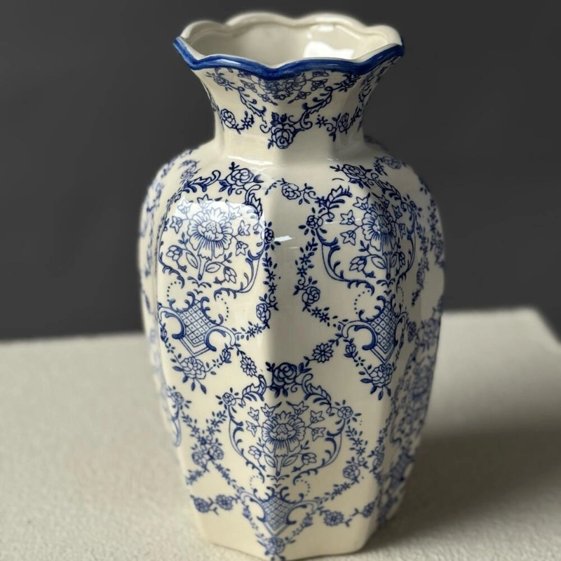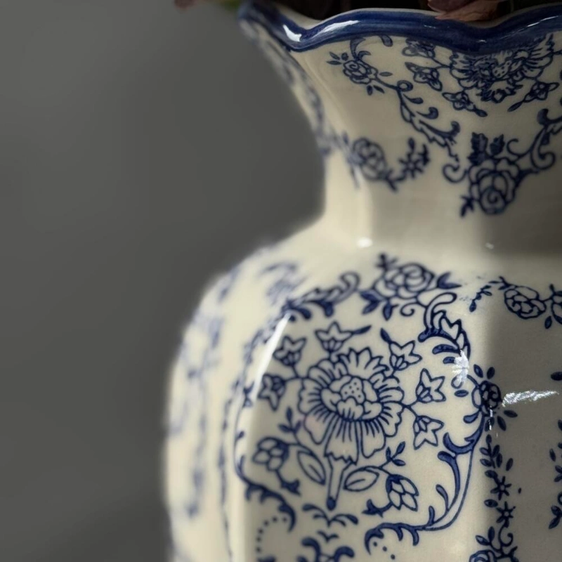 ГлавнаяКаталогПодаркиВазыКерамическая ваза с расписными синими узорами