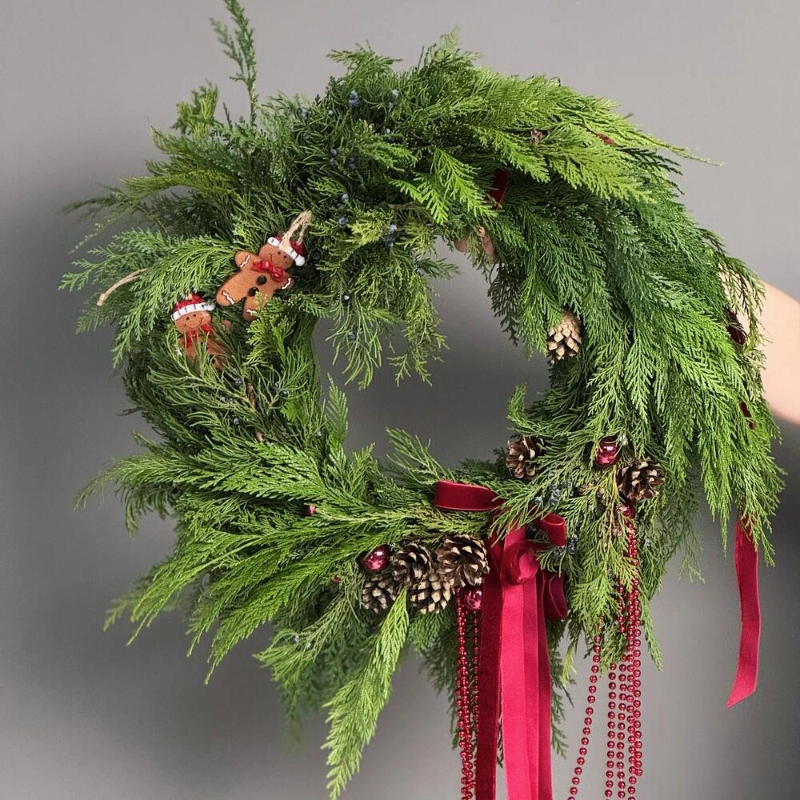 ГлавнаяКаталогНовый годНовогодний венок и хвойных веток