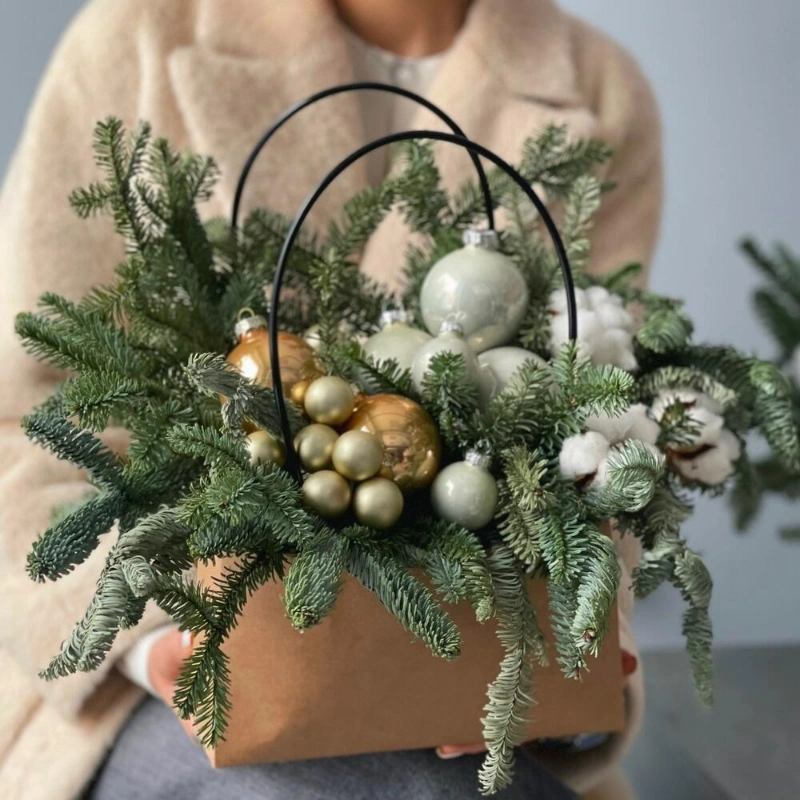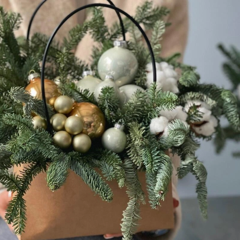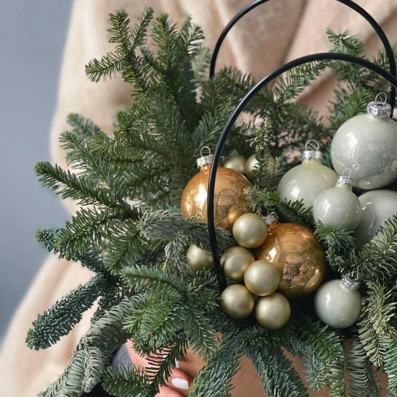Этот новогодний букет выполнен в праздничной тематике и станет ярким украшением любого интерьера. В основе композиции — искусственная елка (нобилис), придающая ей особую свежесть и натуральность. В букет добавлены декоративные игрушки, создающие атмосферу волшебства и праздника. Цветовая палитра включает классические новогодние оттенки — зеленый, красный и золотой. Такой букет отлично подойдет для подарка близким или для украшения дома к Новому году. Он выглядит ярко, празднично и необычно благодаря своей оригинальной форме. Композиция легко сочетает натуральные и искусственные элементы, создавая гармоничный образ. Важную роль играют декоративные игрушки, подчеркивающие тему зимних праздников. Благодаря использованию нобилиса, букет выглядит объемно и празднично. Такой подарок обязательно порадует и создаст праздничное настроение у получателя.