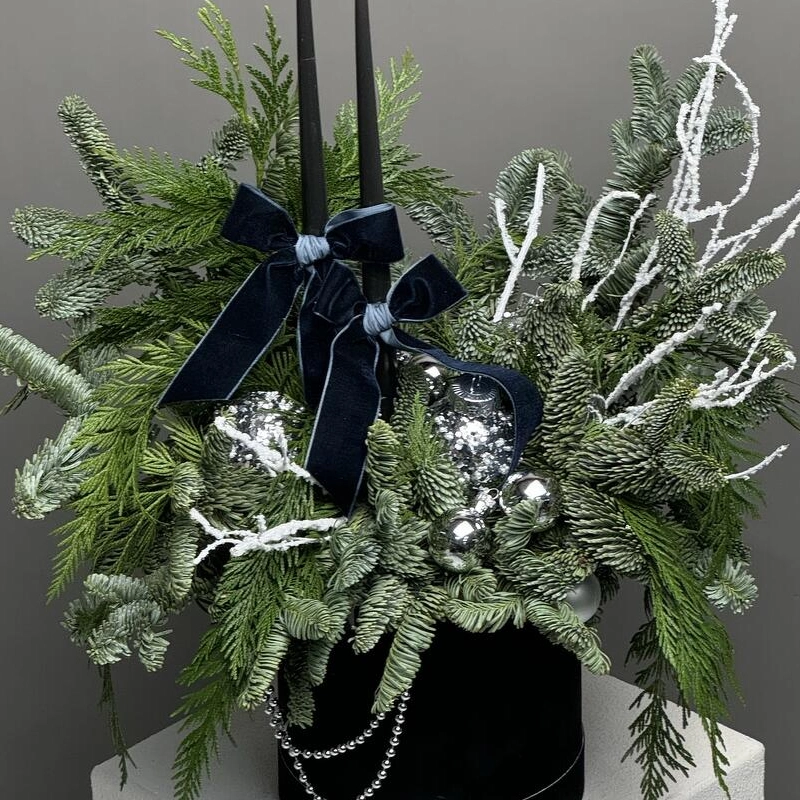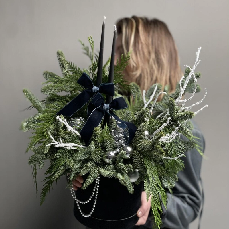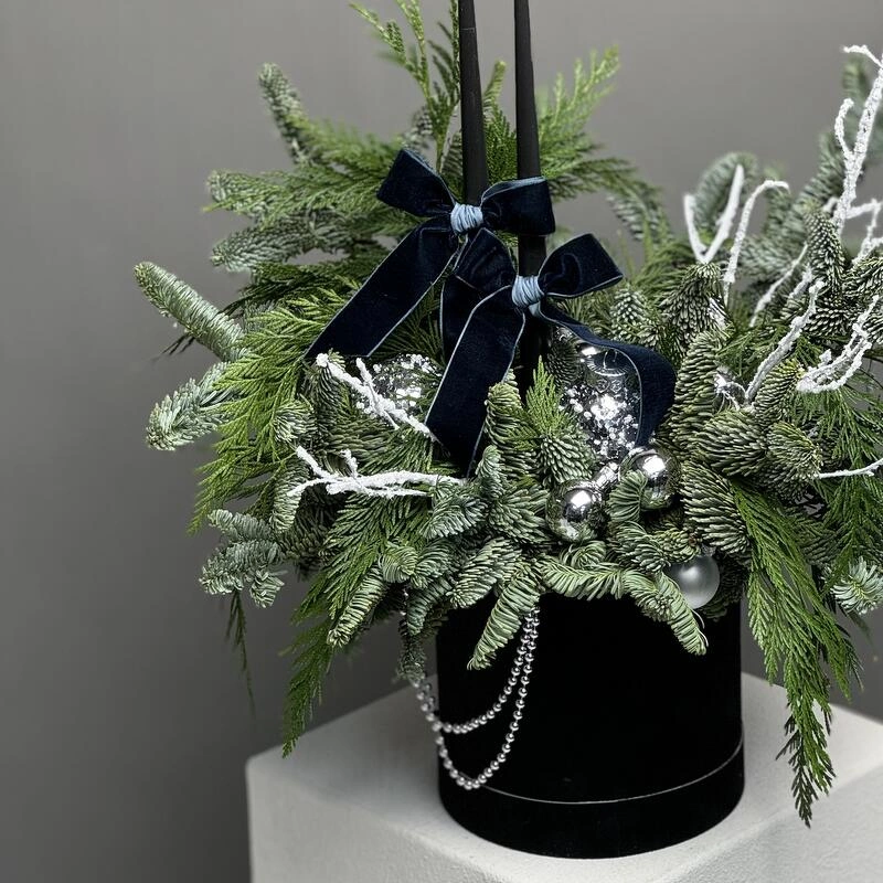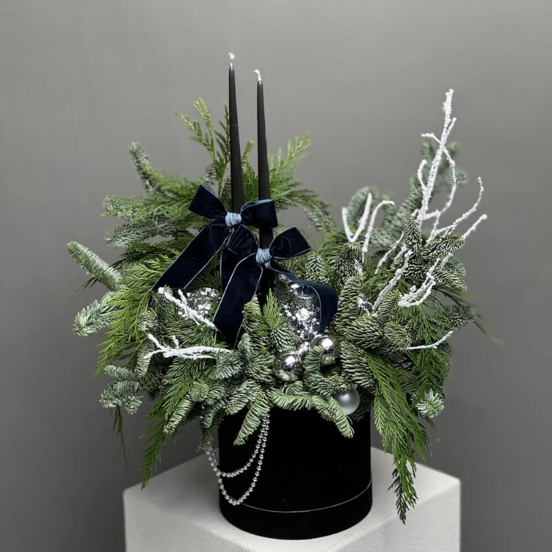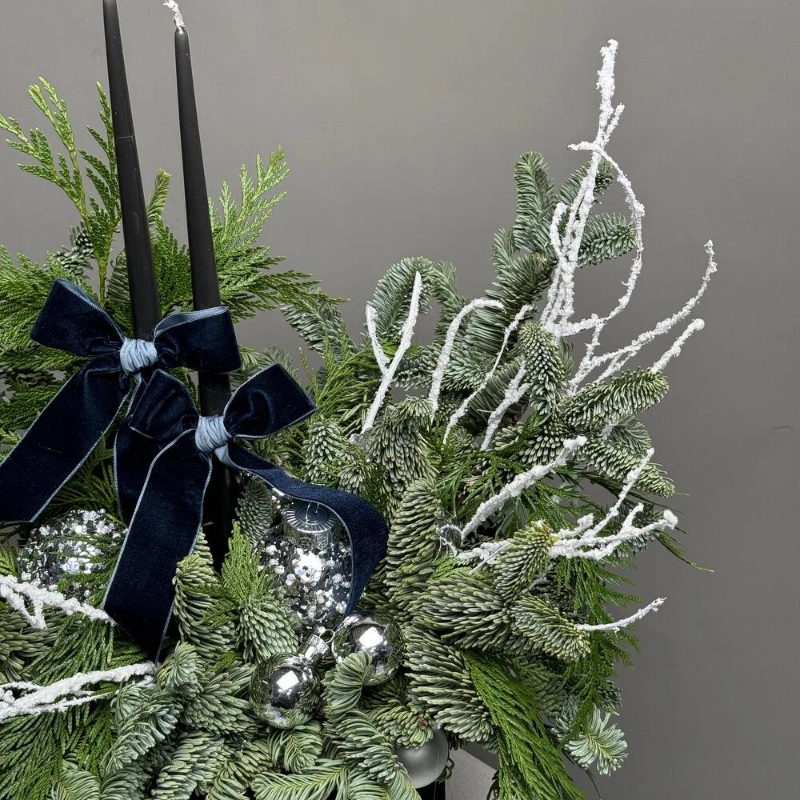 Новогодняя композиция из нобилиса с премиум-свечкми и украшениями