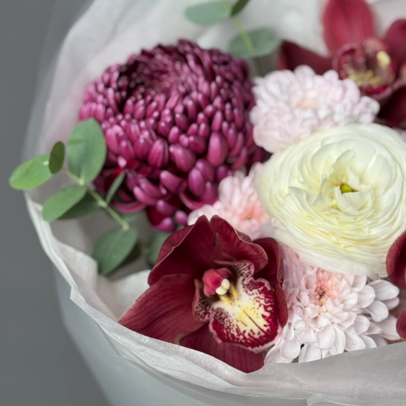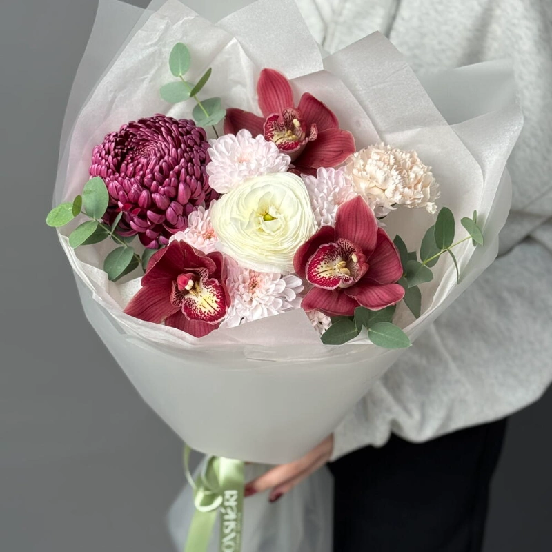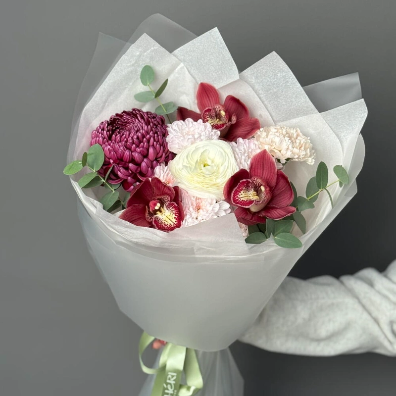 Хризантемы бигуди и орхидеи