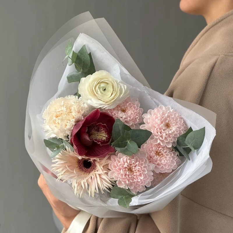 ГлавнаяКаталогАвторский стойкий букет с ранункулюсом 🤍