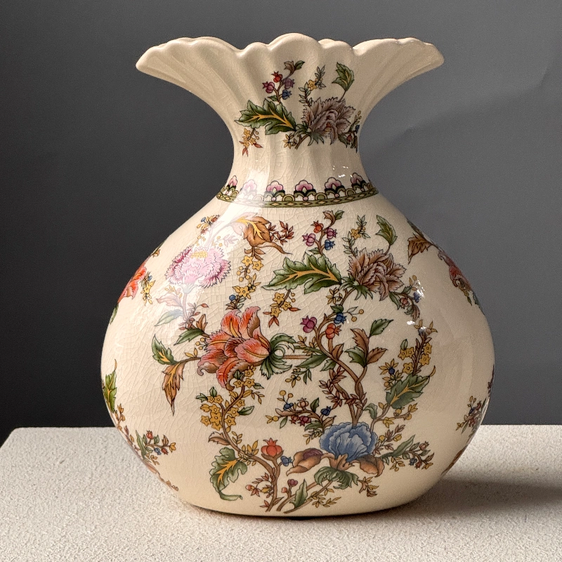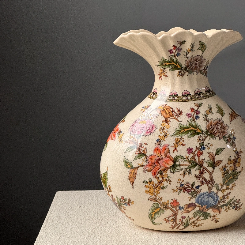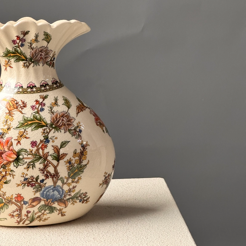 Погрузитесь в очарование старины с этой изысканной вазой. Её кремовый фон оживает благодаря пышному цветочному узору в нежных коралловых, голубых и зеленых тонах. Волнистое горлышко придает ей легкость, а округлая форма – благородство. Это не просто ваза, а самостоятельное произведение искусства, способное мгновенно преобразить любой интерьер, наполнив его уютом и элегантностью. Идеальный акцент, который будет радовать глаз каждый день.
