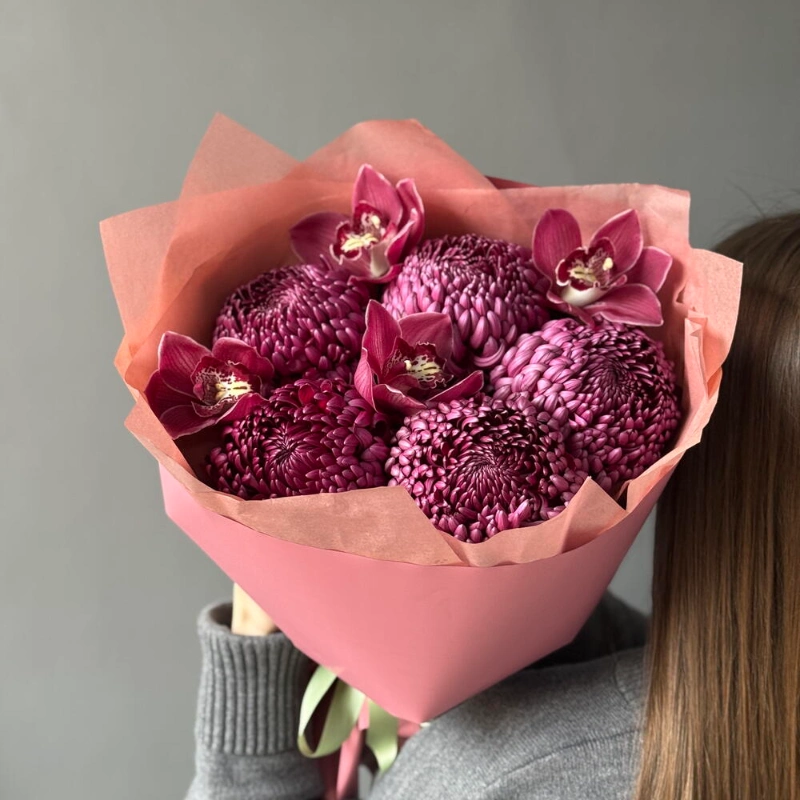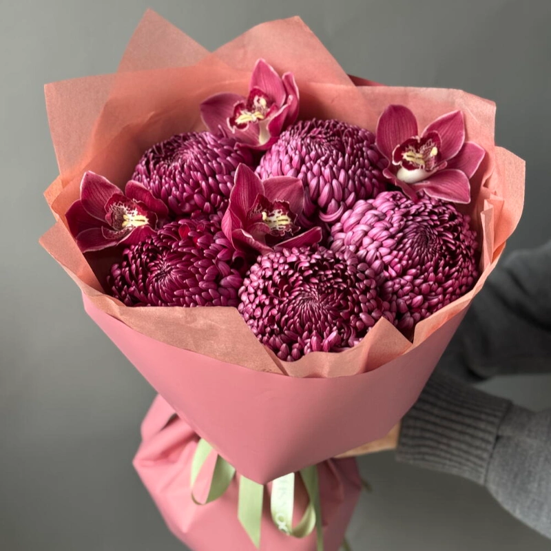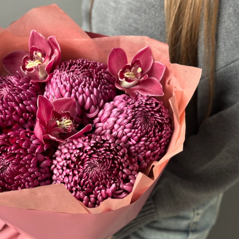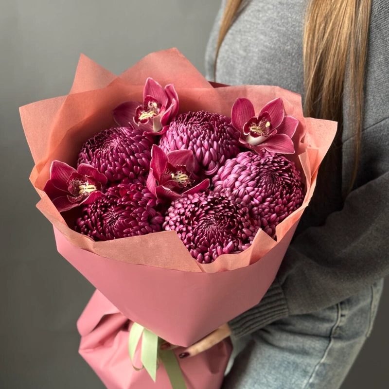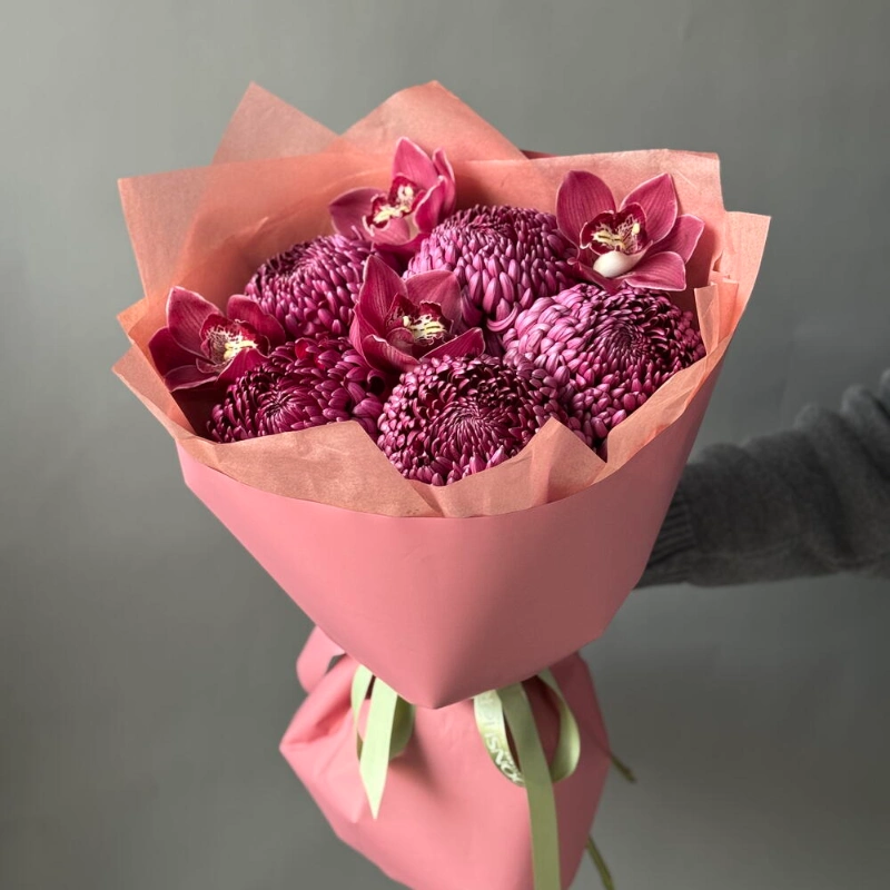 Букет: хризантема Бигуди и орхидеи