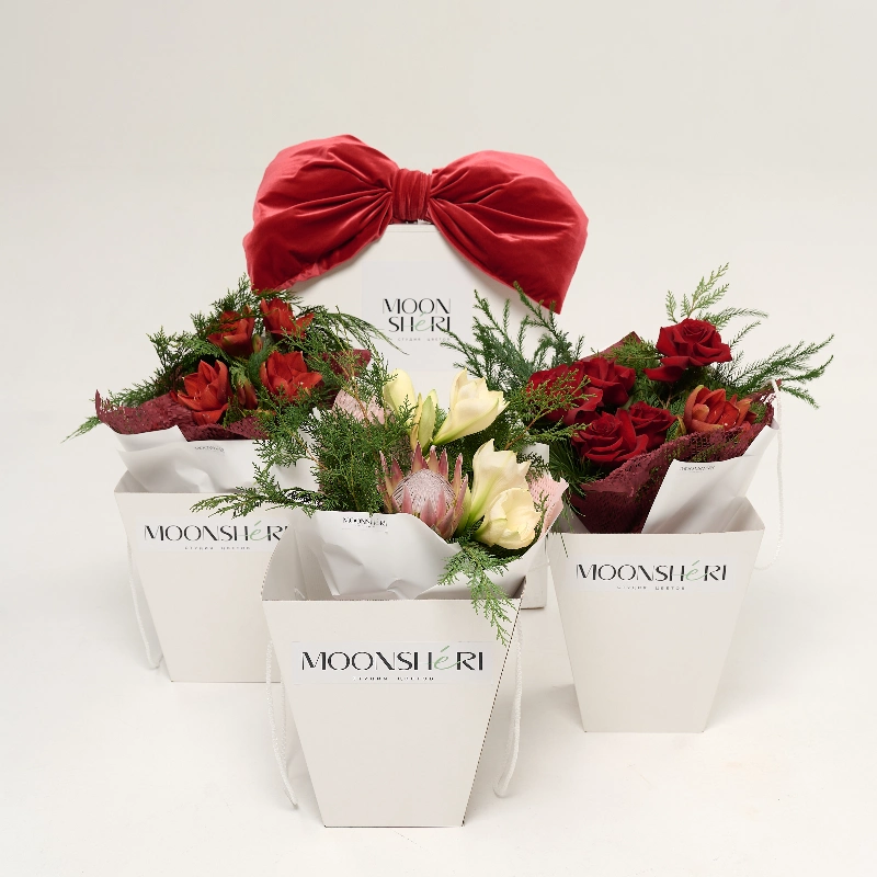 ГлавнаяКаталогНовый годЗимний букет с амариллисом и красными розами
