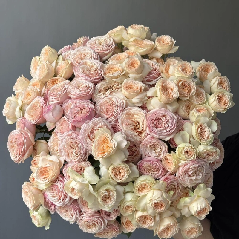 Нежная охапка кустовых пионовидных роз премиальной плантации! Удивляет и покоряет своим объемом и красотой