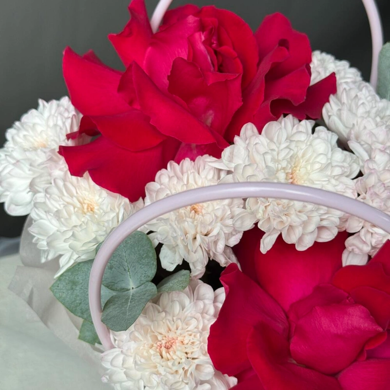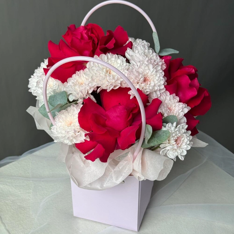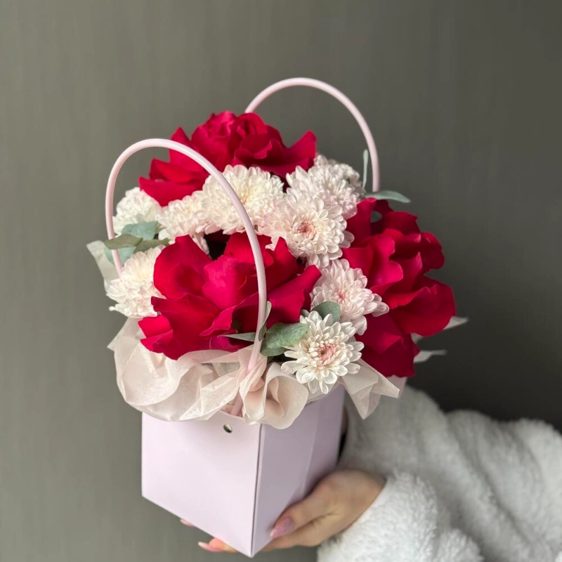 ГлавнаяКаталогКомпозицииСумочка с розами и хризантемой