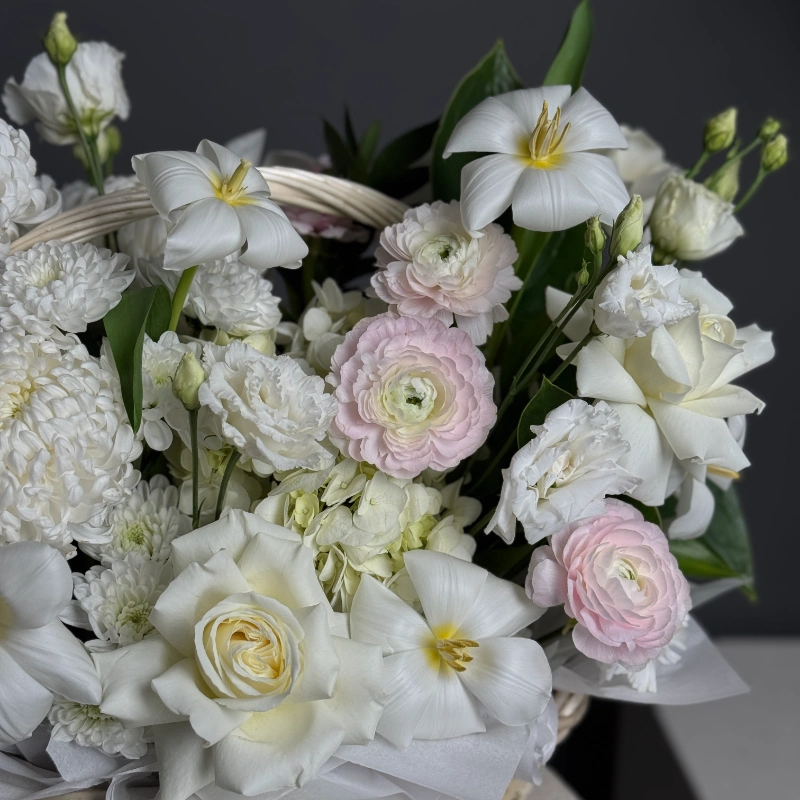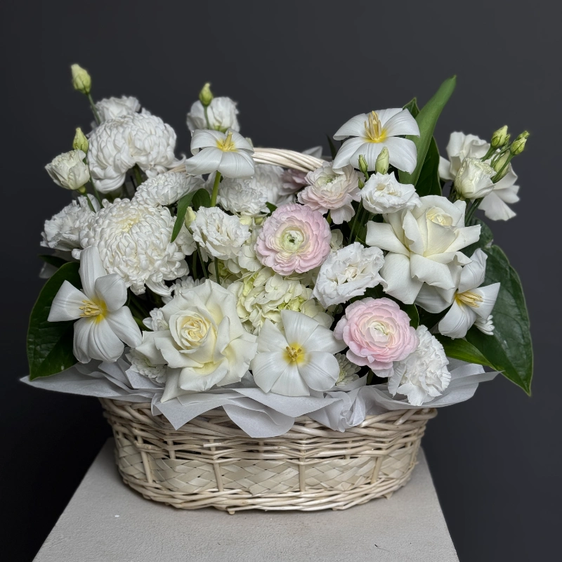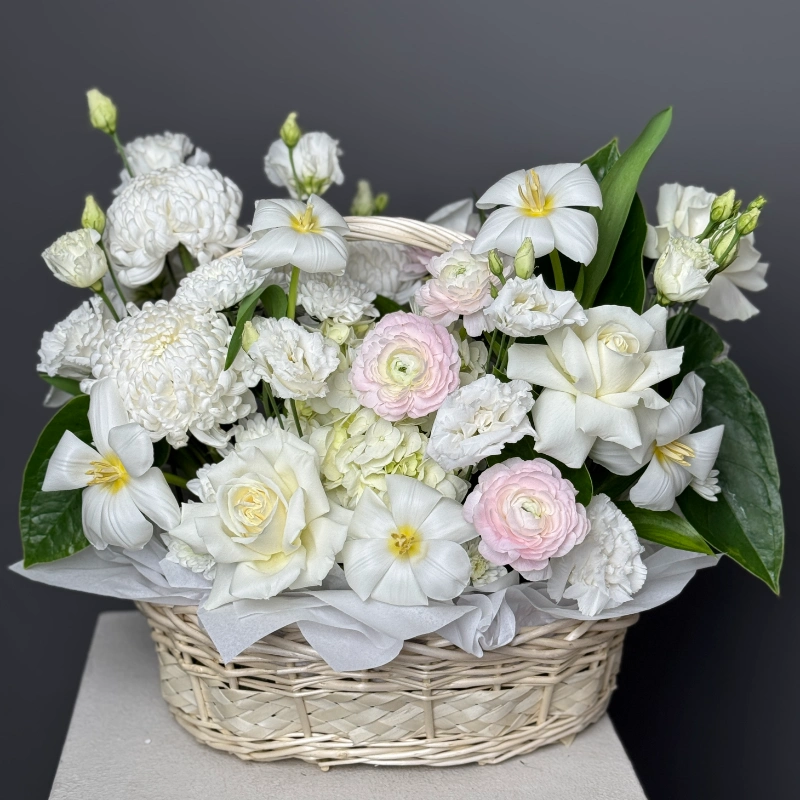 ГлавнаяКаталогКомпозицииДыхание весны в плетёной корзине