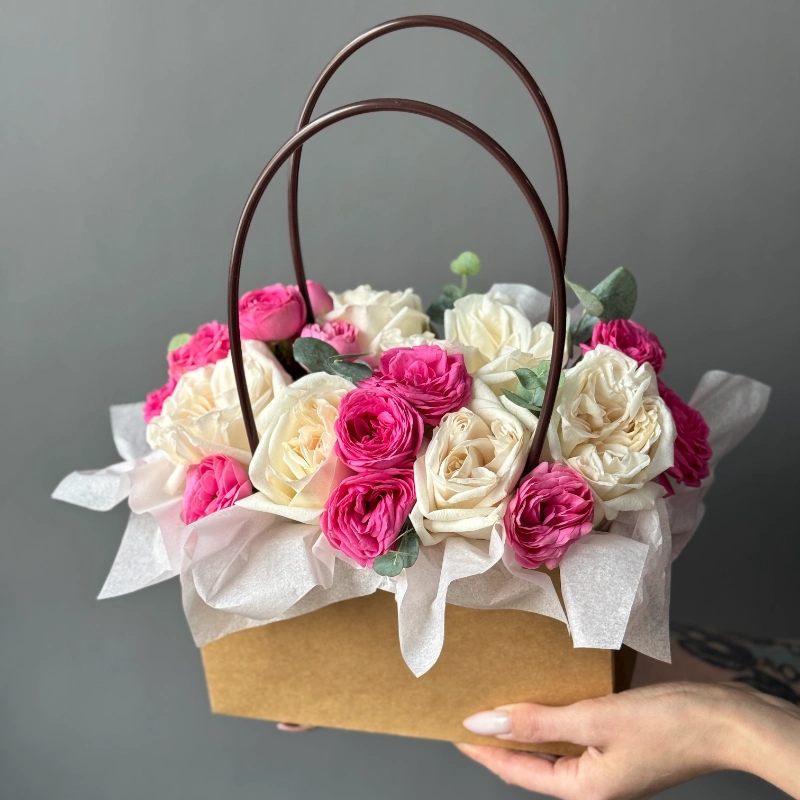 Композиция в сумочке с французскими розами