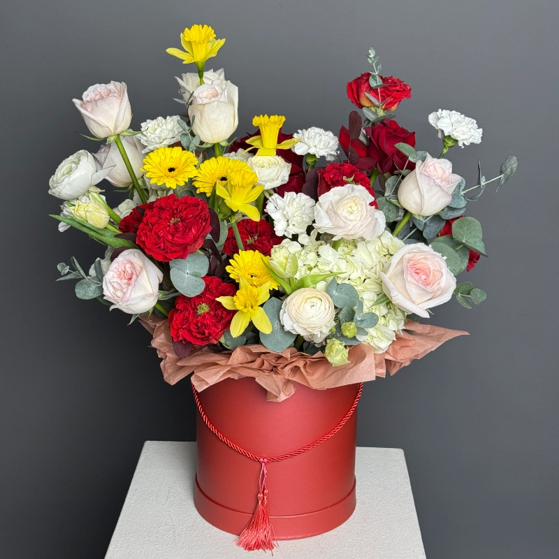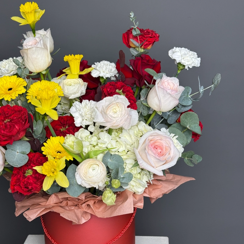 ГлавнаяКаталогКомпозицииЯркая композиция в коробке