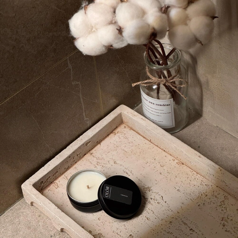 Для производства свечей мы используем натуральный соевый воск.(имеются сертификаты безопасности)Он обладает превосходной отдачей аромата.