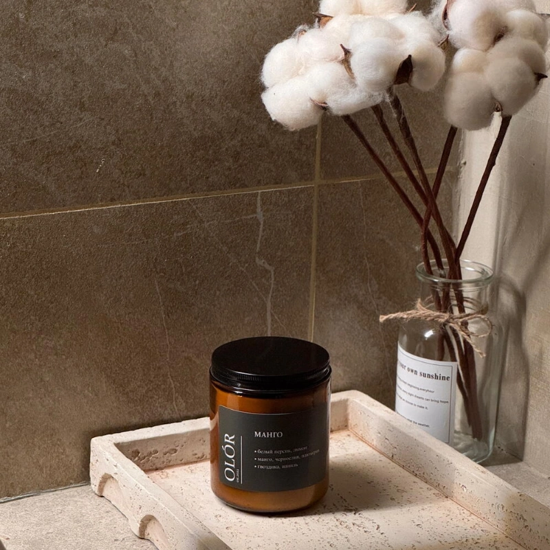 Для производства свечей мы используем натуральный соевый воск.(имеются сертификаты безопасности)Он обладает превосходной отдачей аромата.