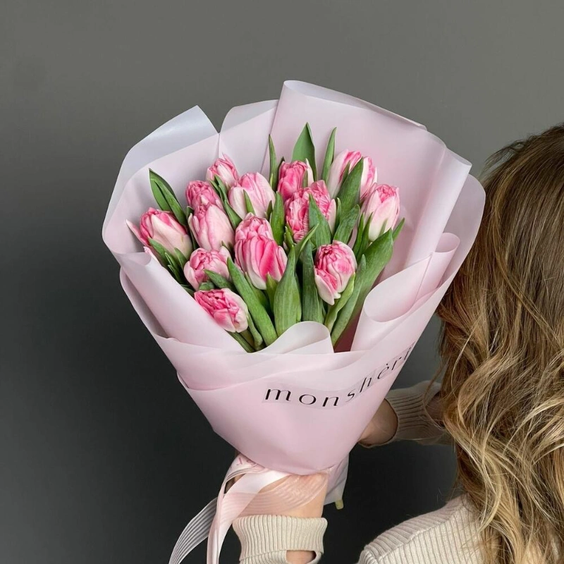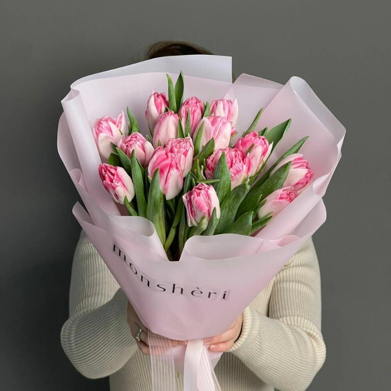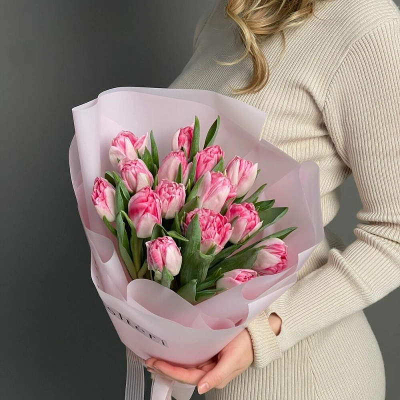 Шикарный моно букет с тюльпанами 15 штук🩷