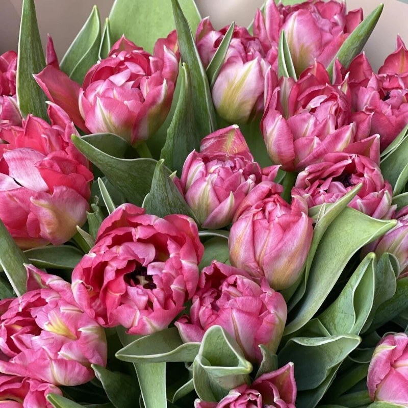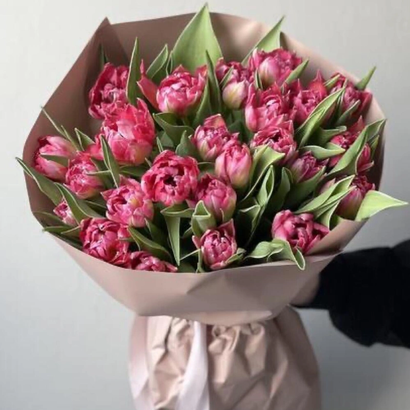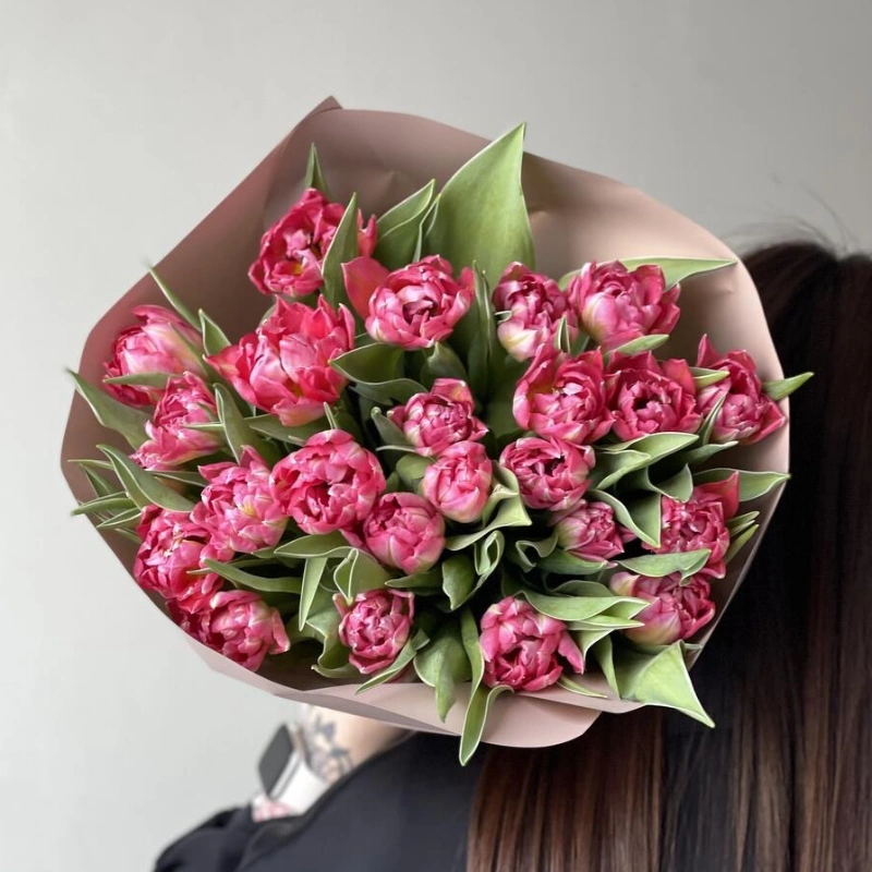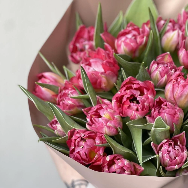 Монобукет из ярко розовых тюльпанов Голландские сортовые тюльпаны
