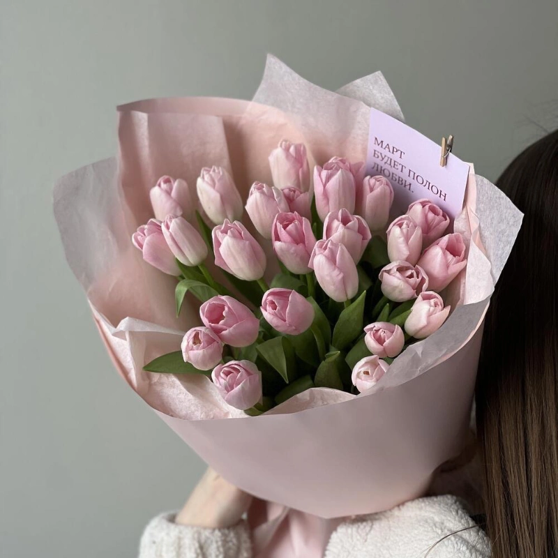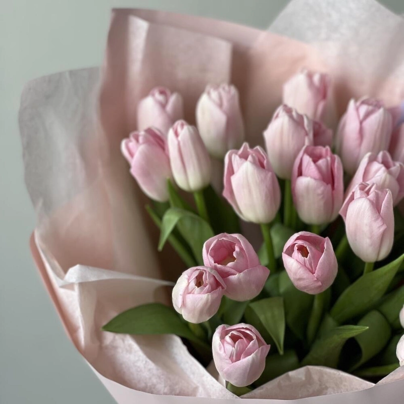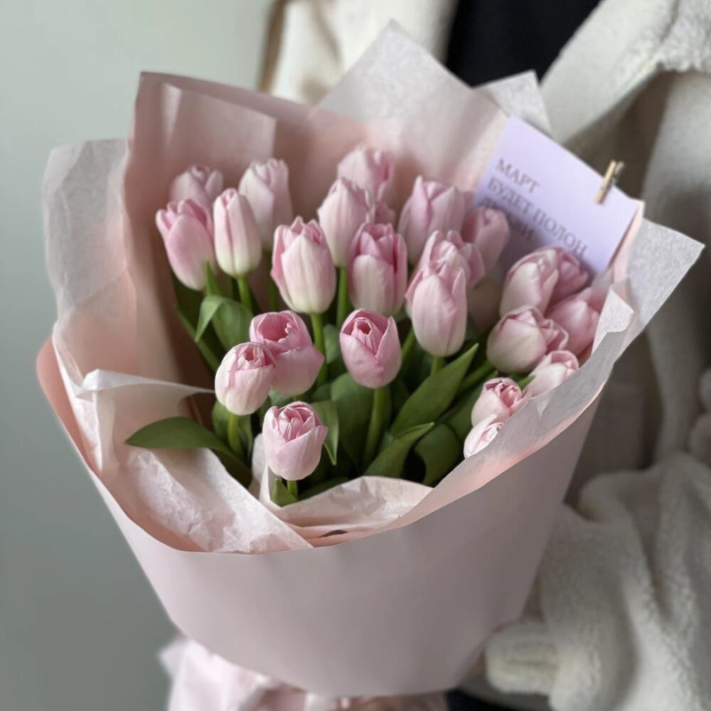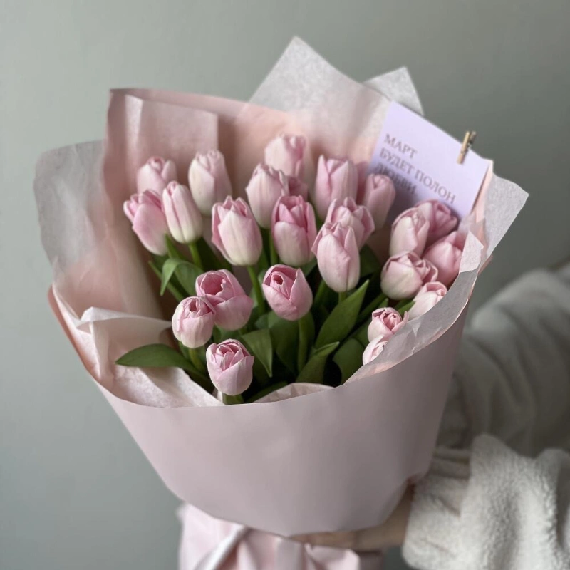 Монобукет из нежно розовых тюльпанов в стильной упаковке! Голландские тюльпаны