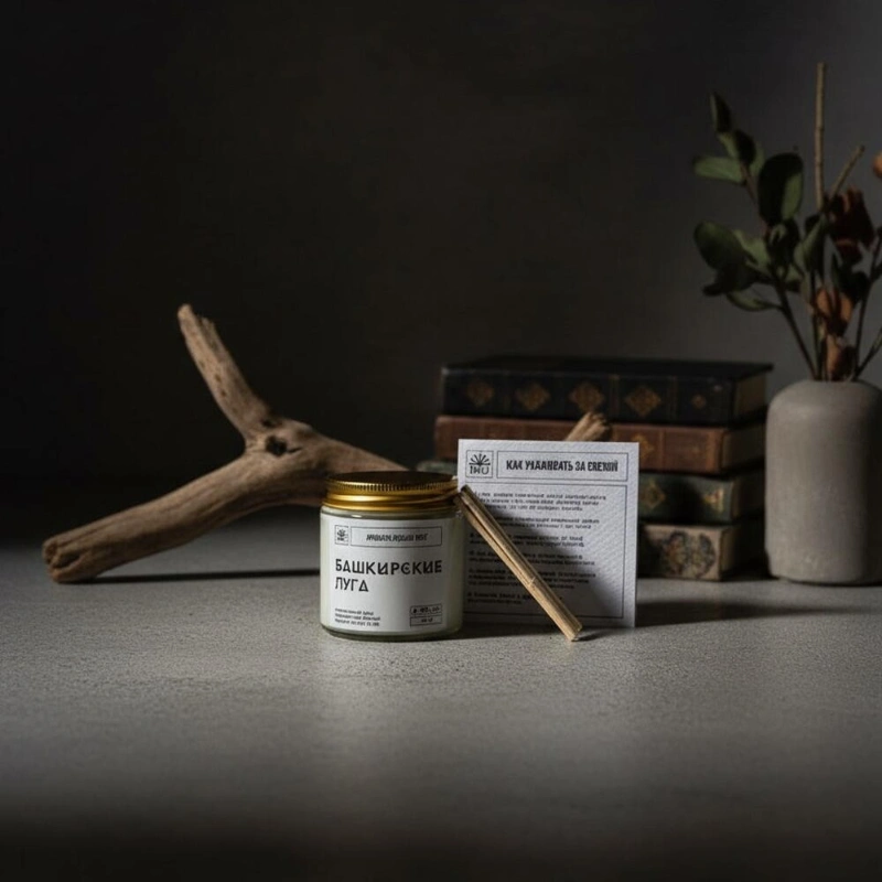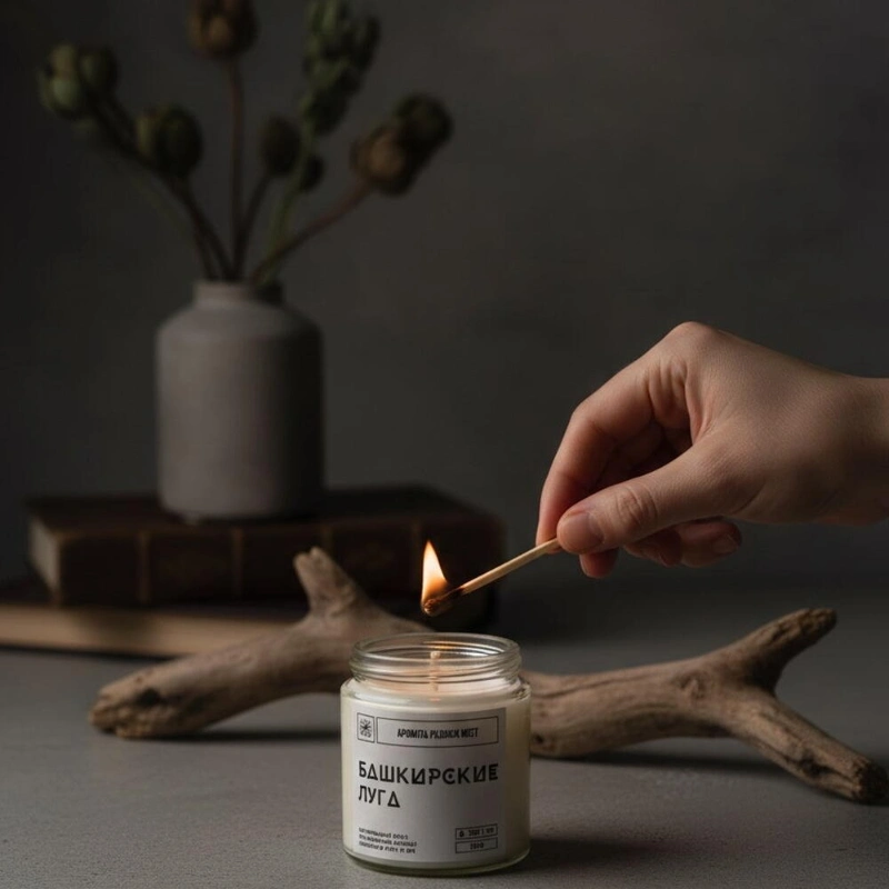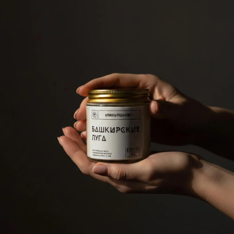 Ароматическая свеча «Башкирские луга»НотыTOP - можжевельник, чабрец, эвкалиптHEART - кора дуба, бергамот, липаBASE - берёза, душица, шалфейУпаковка: крафтовая коробочка, инструкция, спичкиОбъем 120млМатериалСостав: 100% натуральные воски кокосовый и оливковый, ароматическая отдушка, фитиль хлоковый.РазмерШирина - 5 смВысота - 5 см