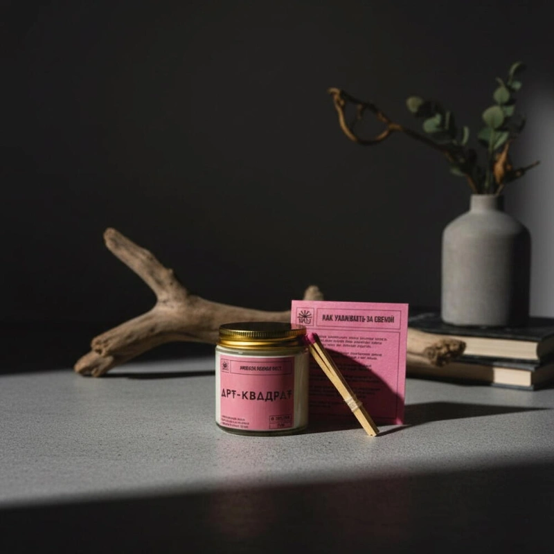 Ароматическая свеча «Арт-квадрат»НотыTOP - неролиHEART - мускатный орех, бобы тонкаBASE - сандал, ладан, амбраУпаковка: крафтовая коробочка, инструкция, спичкиОбъем 120млМатериалСостав: 100% натуральные воски кокосовый и оливковый, ароматическая отдушка, фитиль хлоковый.РазмерШирина - 5 смВысота - 5 см