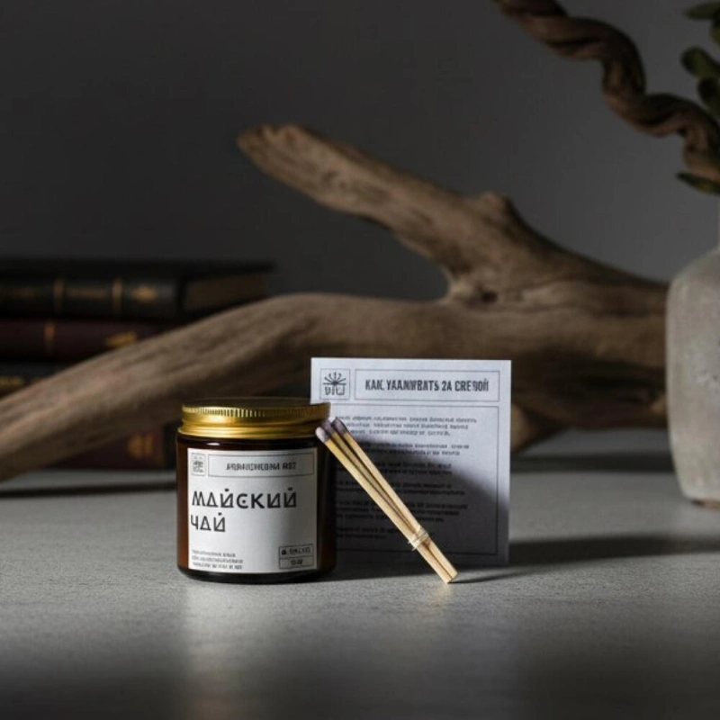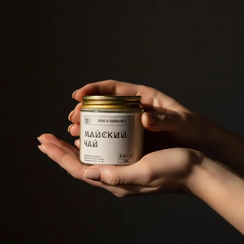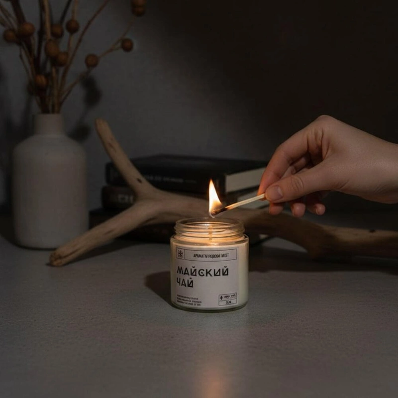 Ароматическая свечи «Майский чай»НотыTOP - розовая вода, грейпфрутHEART - черная смородина, мятаBASE - гвоздика, белый кедр, палисандрУпаковка: крафтовая коробочка, инструкция, спичкиОбъем 120млМатериалСостав: 100% натуральные воски кокосовый и оливковый, ароматическая отдушка, фитиль хлоковый.РазмерШирина - 5 смВысота - 5 см