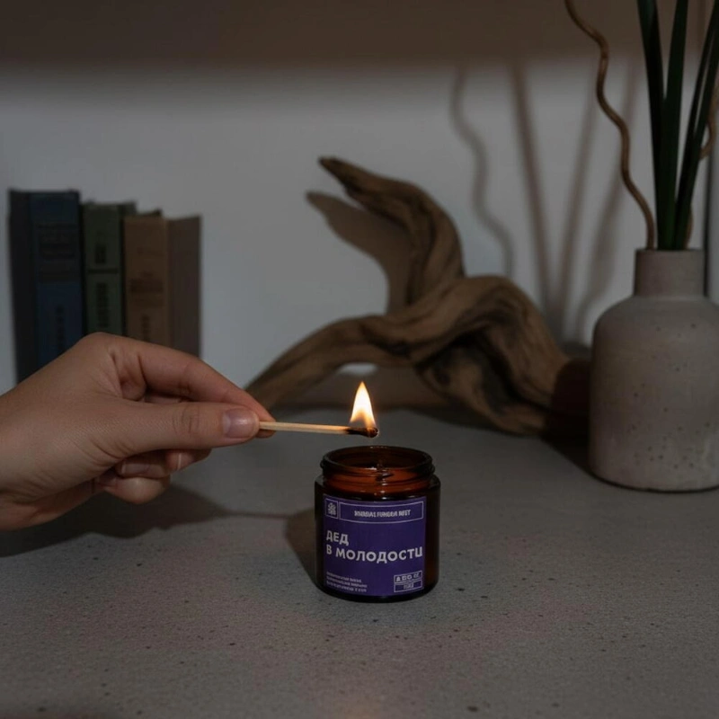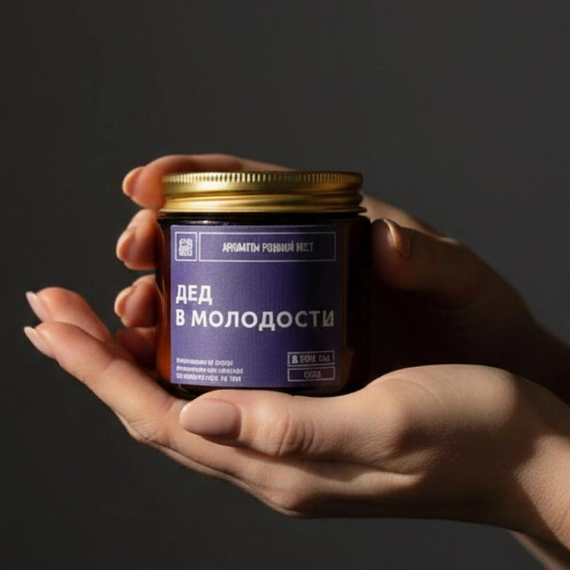 Ароматическая свеча «Дед в молодости»НотыTOP - ваниль, лакрицаHEART - пачули, какао-бобы, вермутBASE - амбра, ладан, дубовая смолаУпаковка: крафтовая коробочка, инструкция, спичкиОбъем 120млМатериалСостав: 100% натуральные воски кокосовый и оливковый, ароматическая отдушка, фитиль хлоковый.РазмерШирина - 5 смВысота - 7 см