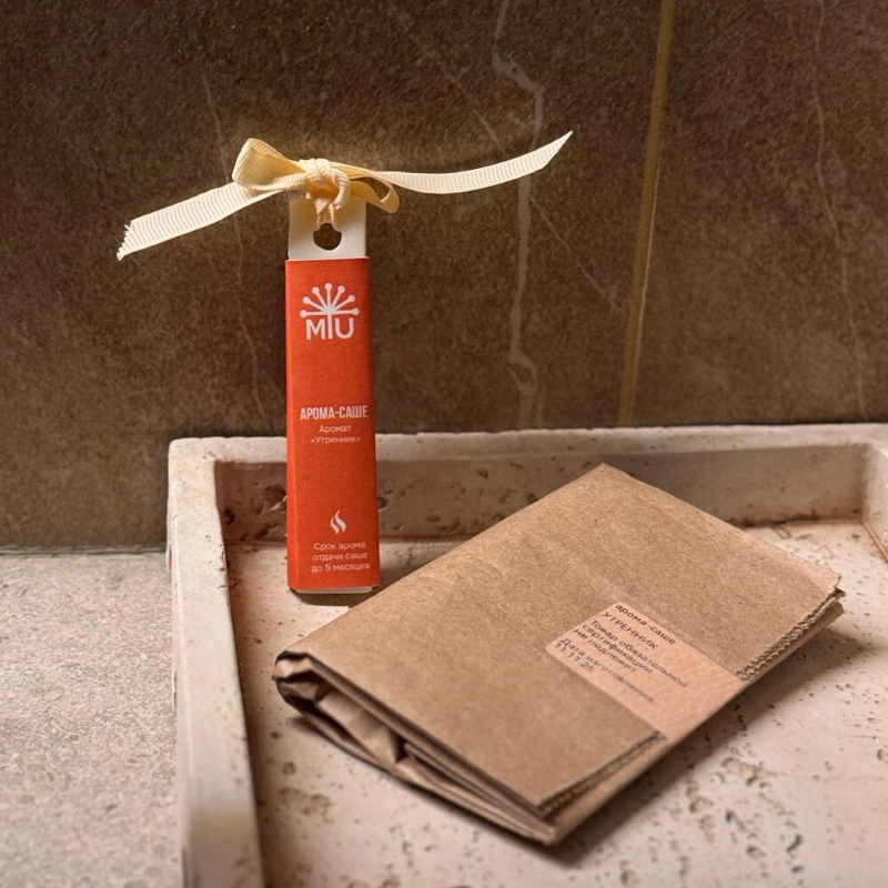 Арома-саше «Утренник»Состав: 100% натуральный оливковый воск, ароматическая отдушкаНотыTOP - цедра мандарина, мякоть лимонаHEART - розмарин, хвойные иголки, пихтаBASE - мякоть мандарина, кедровые шишкиВес 20 гр