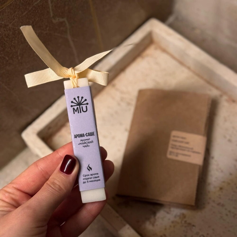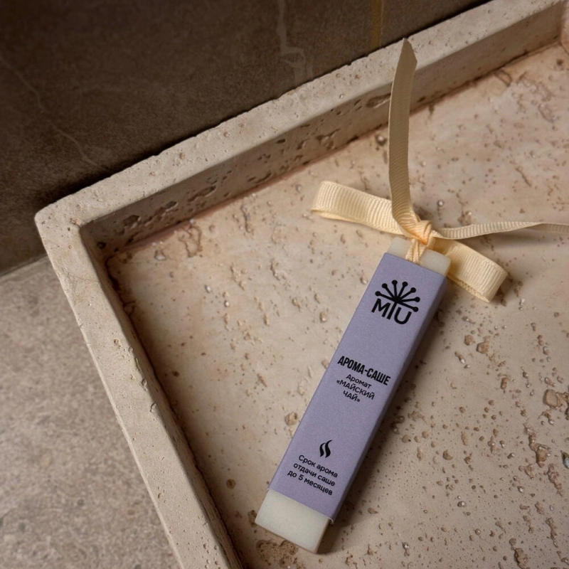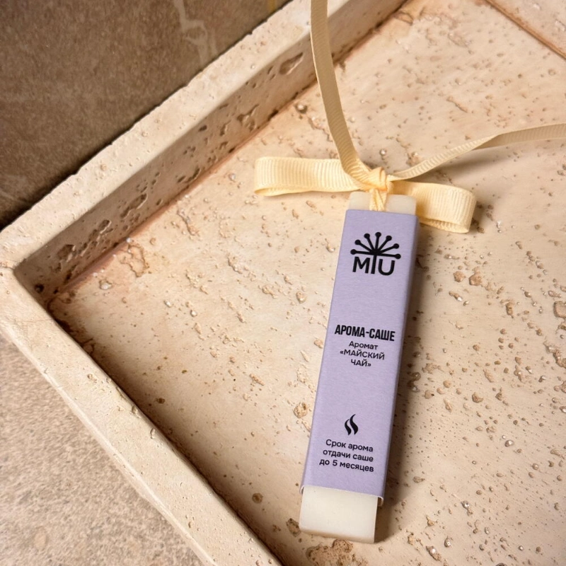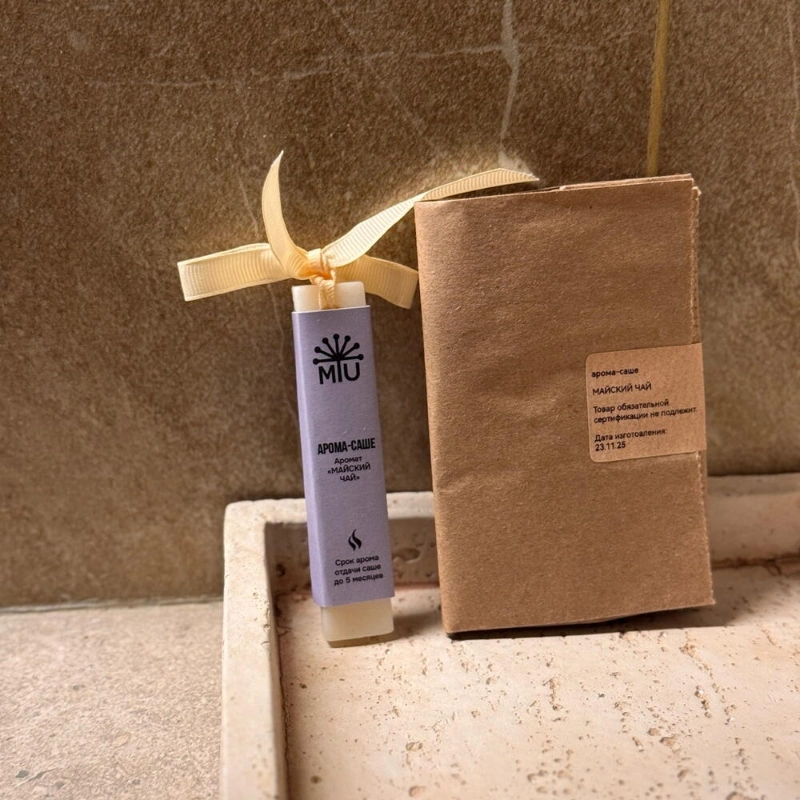 Арома-саше «Майский чай»Состав: 100% натуральный оливковый воск, ароматическая отдушкаНотыTOP - розовая вода, грейпфрутHEART - черная смородина, мятаBASE - гвоздика, белый кедр, палисандрВес 20 гр